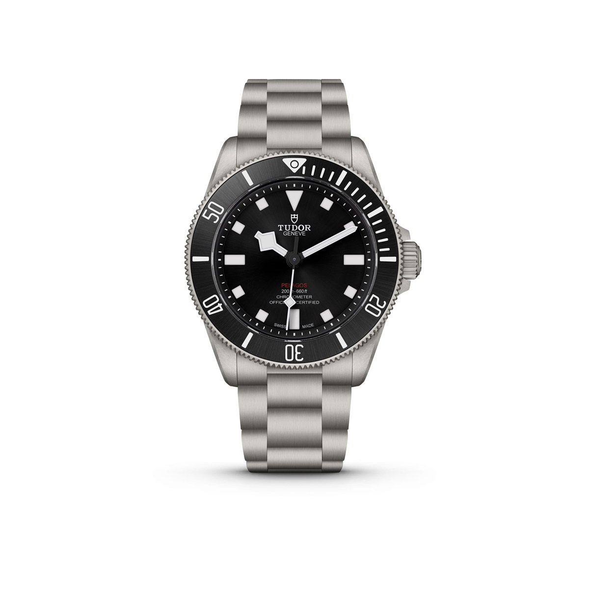 「ブラックベイ」と双璧を成す、〈チューダー〉の本格ダイバーズラインを象徴するのが「ペラゴス」。プロフェッショナルユースを前提に開発されたチタニウム製のハイスペックモデルを39mm径に小型化したのがこの「ペラゴス 39」。水中でも街中