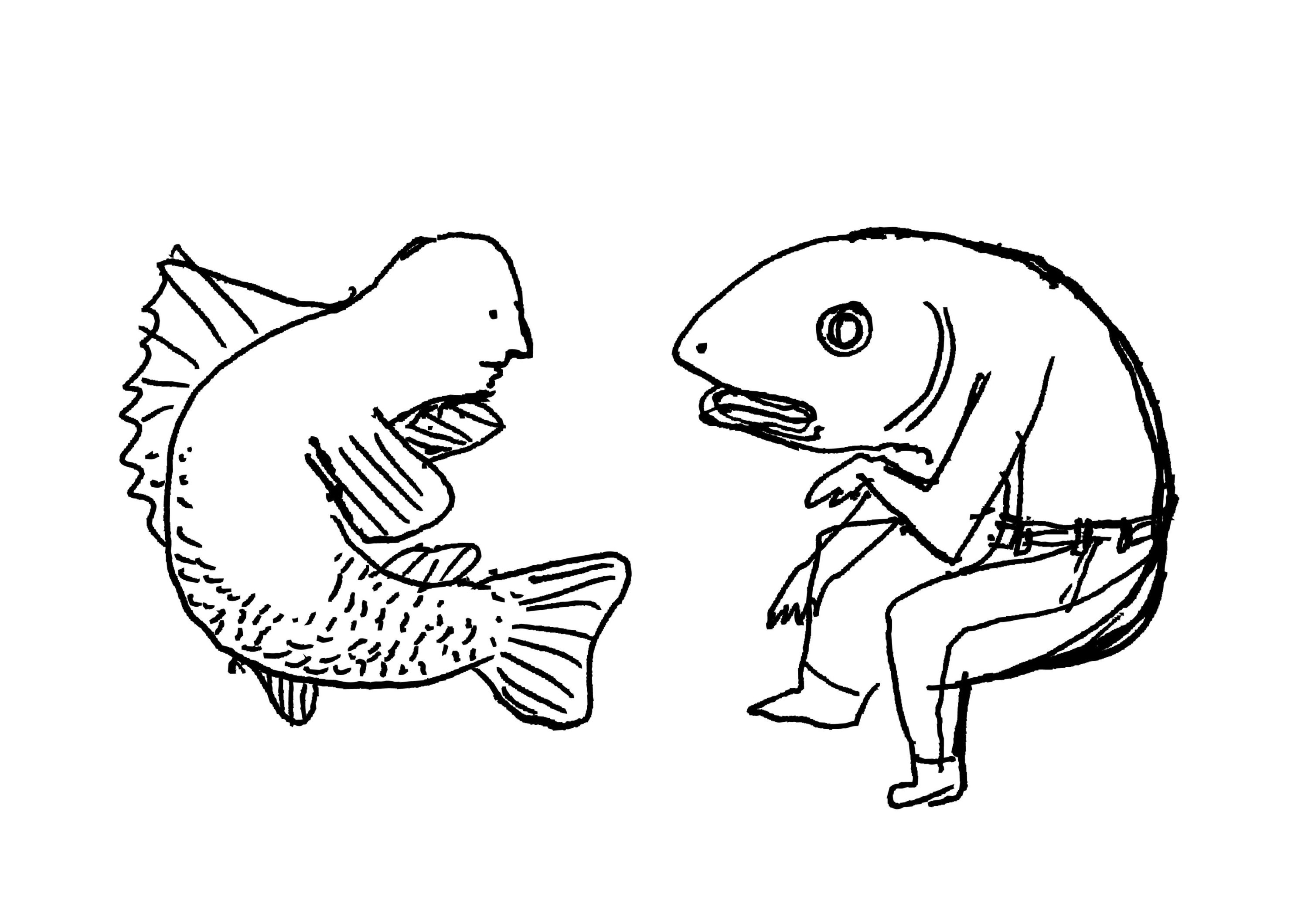 フィッシュマンとマンフィッシュが今日も同じ海辺で向かい合って話しています。彼らが何を話しているのか、誰にも分かりませんが、しばらく見ていると分かるんです。言葉の届かないところで、お互いの心が動いていると。わかりあっているようで、わかりあえていない。その逆もまた然りです。