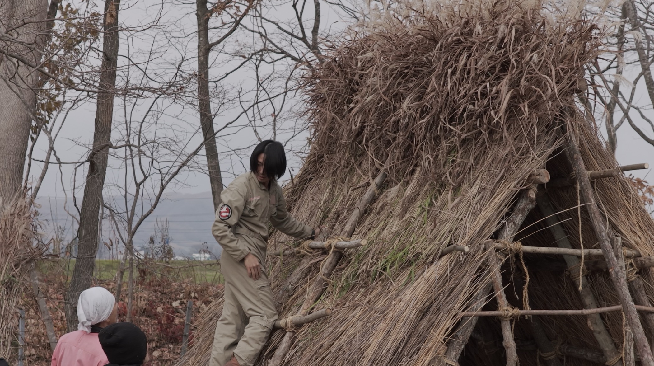 白老町にいた頃、アイヌの方からクチャ(狩猟用の仮小屋)の建て方や、オランダで茅葺き屋根の技術を学んだことがあったので、今回は自分が講師役となり、その知恵を共有した。