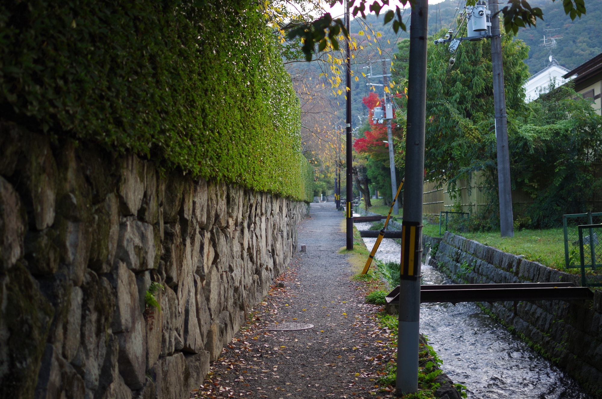 こちらも哲学の道と同じく疏水沿いの道ですが、もっと小規模で、なにか案内があるわけでもないので、通って良いのか一瞬不安になるかもしれません。