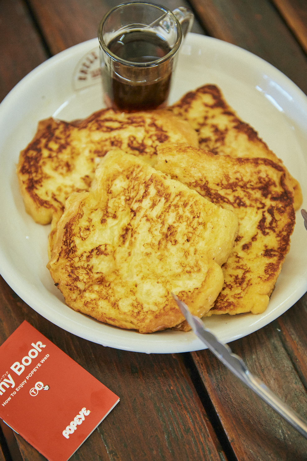 なんと2027年で創業50周年を迎える「アンクルサムズ・サンドウィッチ」。来年で創刊50周年、つまり1歳年上にあたるPOPEYEとも長いお付き合いがあるそうで、メニューにも「ポパイ」や「オリーブ」の名前が。どちらもほうれん草がたっぷり、ヘルシーだけど満足感のある一品とのこと。ポッドキャスト「POP-EYE MEETING/編集会議」でも度々登場していて、POPEYE Webチームはデザートにフレンチトーストをシェアして食べるのがお気に入り。