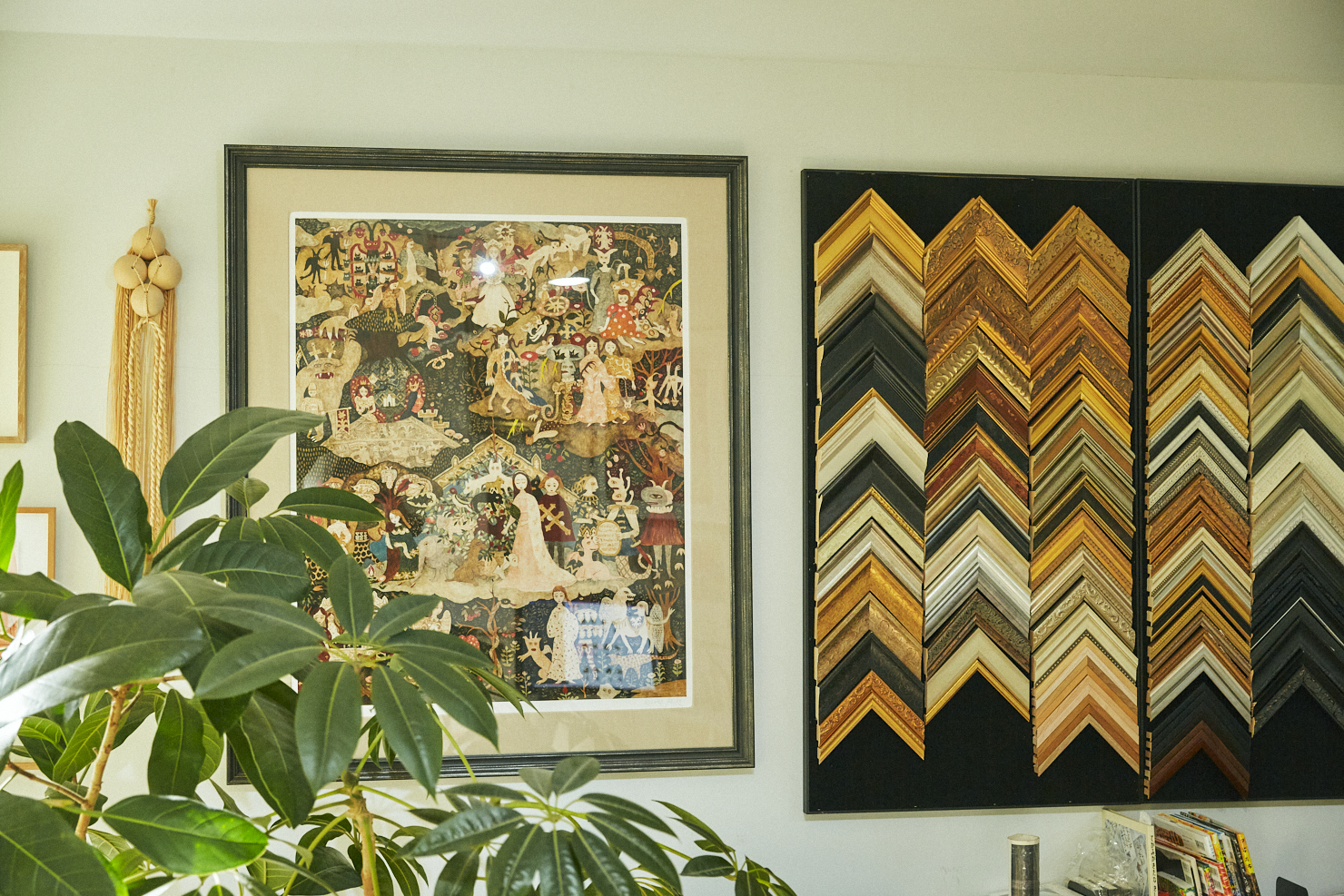 1969年創業の老舗額縁・額装専門店「ニュートン」。2022年の企画「シティボーイの額装術。」で、POPEYE Webスタッフのユニークな私物(シルクスクリーン版画、Tシャツ、カセットテープ…)にぴったりの額装を制作してもらったご縁。今回は隣接するギャラリー「noie extent」にもお邪魔し、受付横にTiny Bookを置かせていただきました。アトリエに並ぶ個性豊かなフレームたちを見ていたら、Tiny Book専用の額縁を作りたくなった。