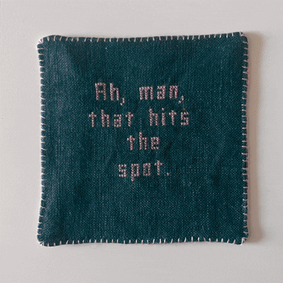 イギリスの硬水は紅茶に、日本の軟水はコーヒーに合うのか、帰国してからは自然とコーヒーを飲むことが増えました。そんな中、久しぶりに映画『ツイン・ピークス』を流していたら、登場人物がとにかくよくコーヒーを飲むもので、気づけばストーリーそっちのけで、コーヒーやドーナツ、パイを味わうときのセリフばかりを追っていました。それらの言葉を拝借して、今度は“コーヒータイム・コースター”を作ってみることにしました。