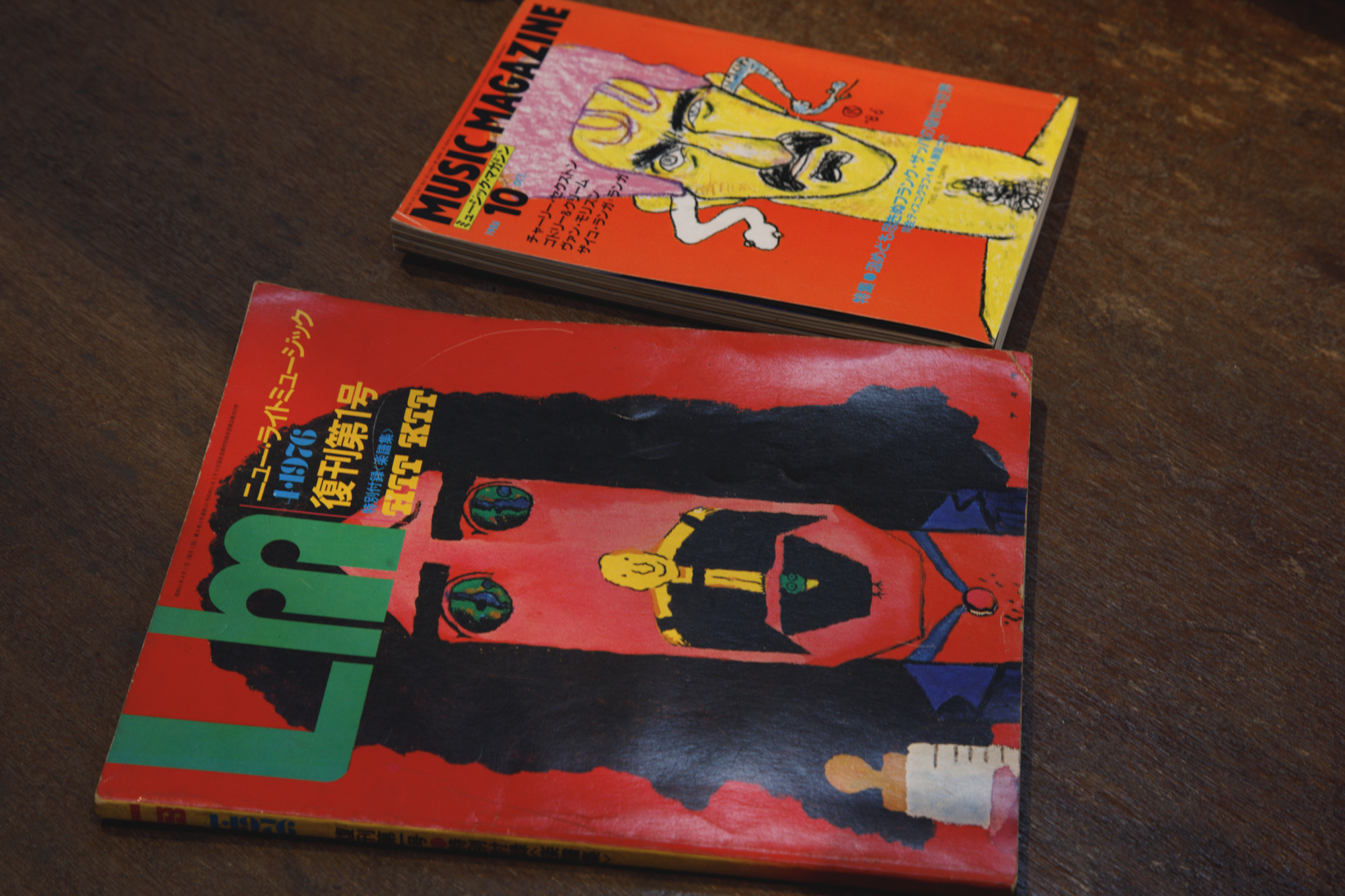 まず、こうやって表紙を眺めるだけで、その時々の時代の日本を代表する写真家、イラストレーター、デザイナー、アーティストたちが多く関わっていることがわかると思います。特に表紙は雑誌の「顔」として重要だったので、表紙のためにアートディレクションをして趣向を凝らしたものが多く、それだけですごいショーケースだと思います。例えば、この『ニュー・ライトミュージック』(1976年)では古川タク、この『ミュージック・マガジン』(1986年)では吉田カツが、いずれもフランク・ザッパのイラストを描いていたり。そんなのを見比べてみるのも面白いですよね。