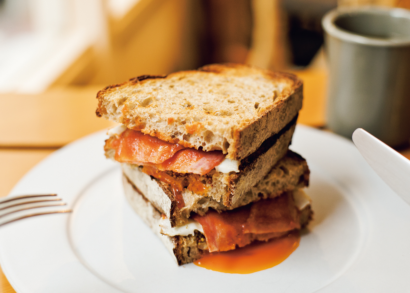 「ベーコンエッグのサンドイッチは破壊的な美味しさ! サワーブレッドも自家製ブラウンソースもすべて絶妙。ここで朝食をとりつつ、その日のデートプランを立てても」(平野)。ハード系パンで魅了する東日本橋の『ビーバーブレッド』がスタッフの一声から始めたオールデイのカフェレストラン。朝一番に同店から運ばれる焼きたてパンを取り入れた料理は、噛み応えのある食感で心身が爽快に目覚める。