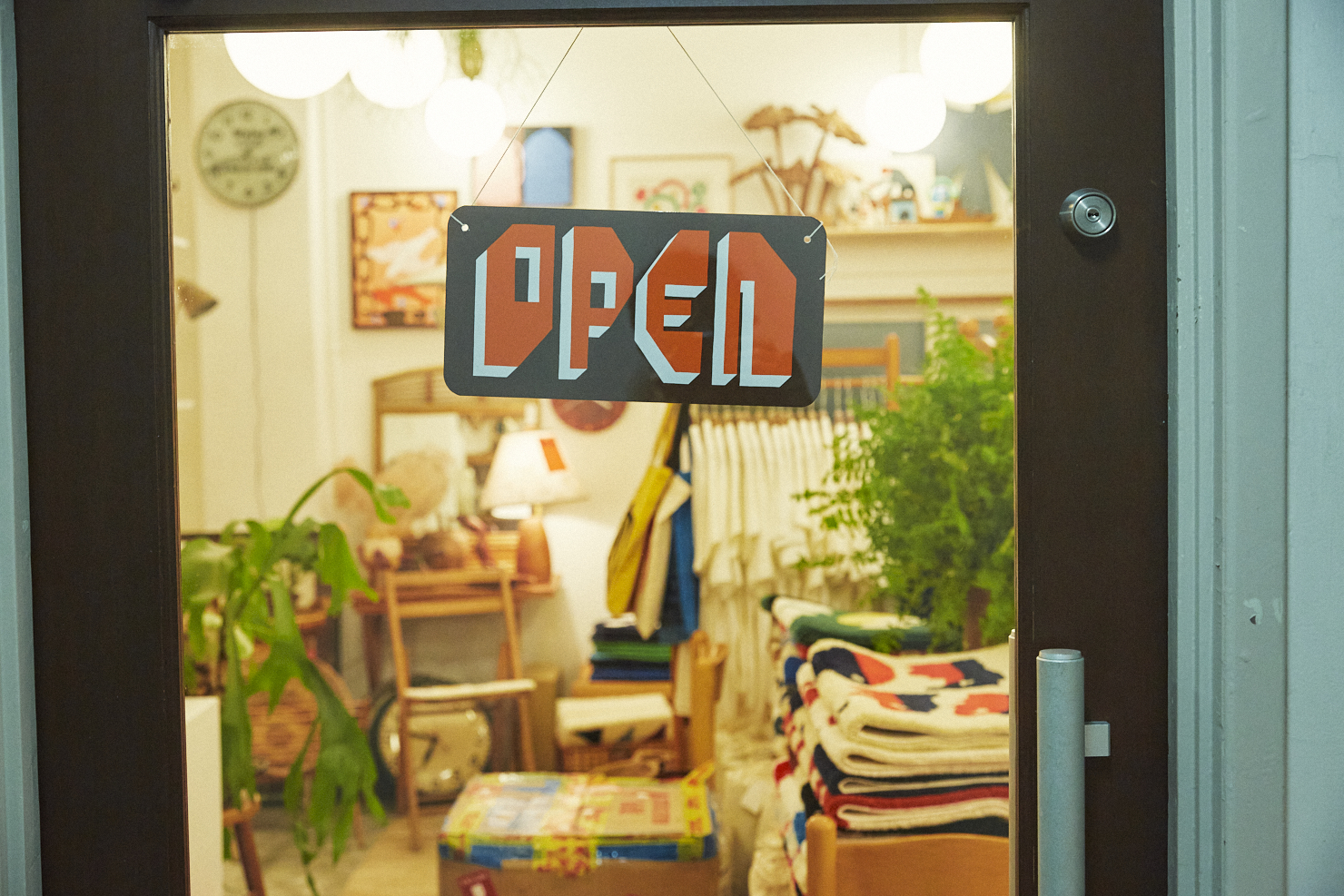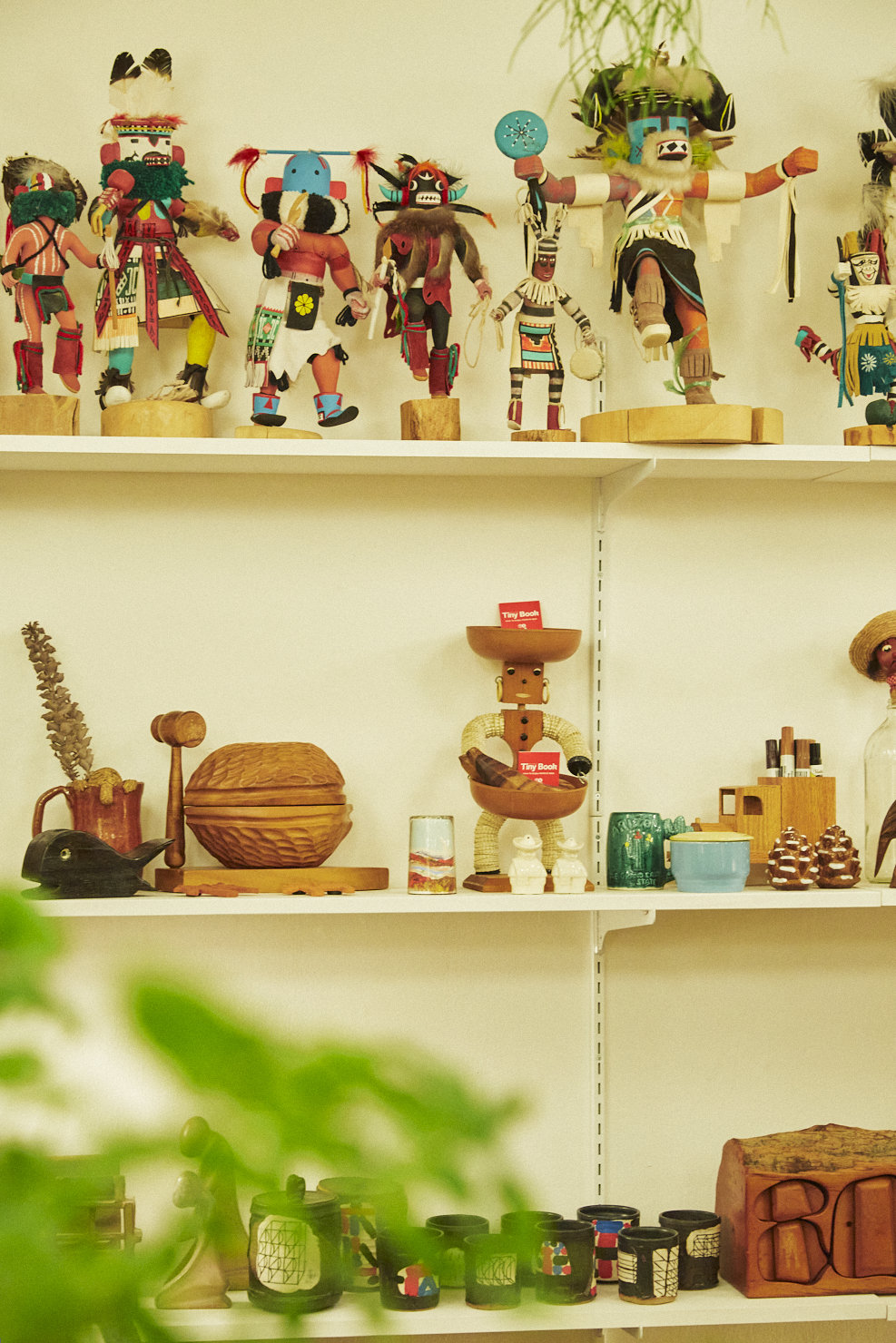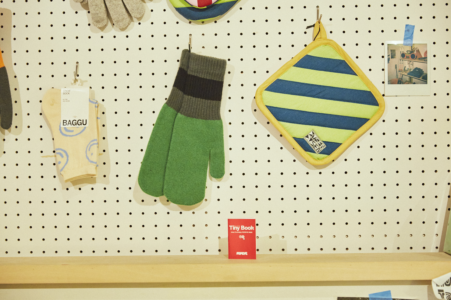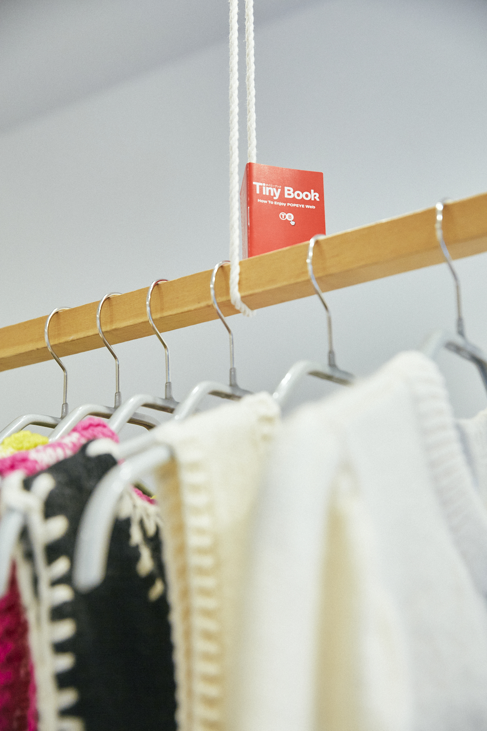 お店の目印であるブルーの卓球台の上に、Tiny Bookも仲間入りさせてもらった。店主、金山木子さんの審美眼で選ばれた国内外のファッションアイテムのほか、店内奥には古着も。6割くらいが海外からのお客さんだそうで、唯一無二のセレクトゆえに旅行の目的地にもなる場所なのだ。