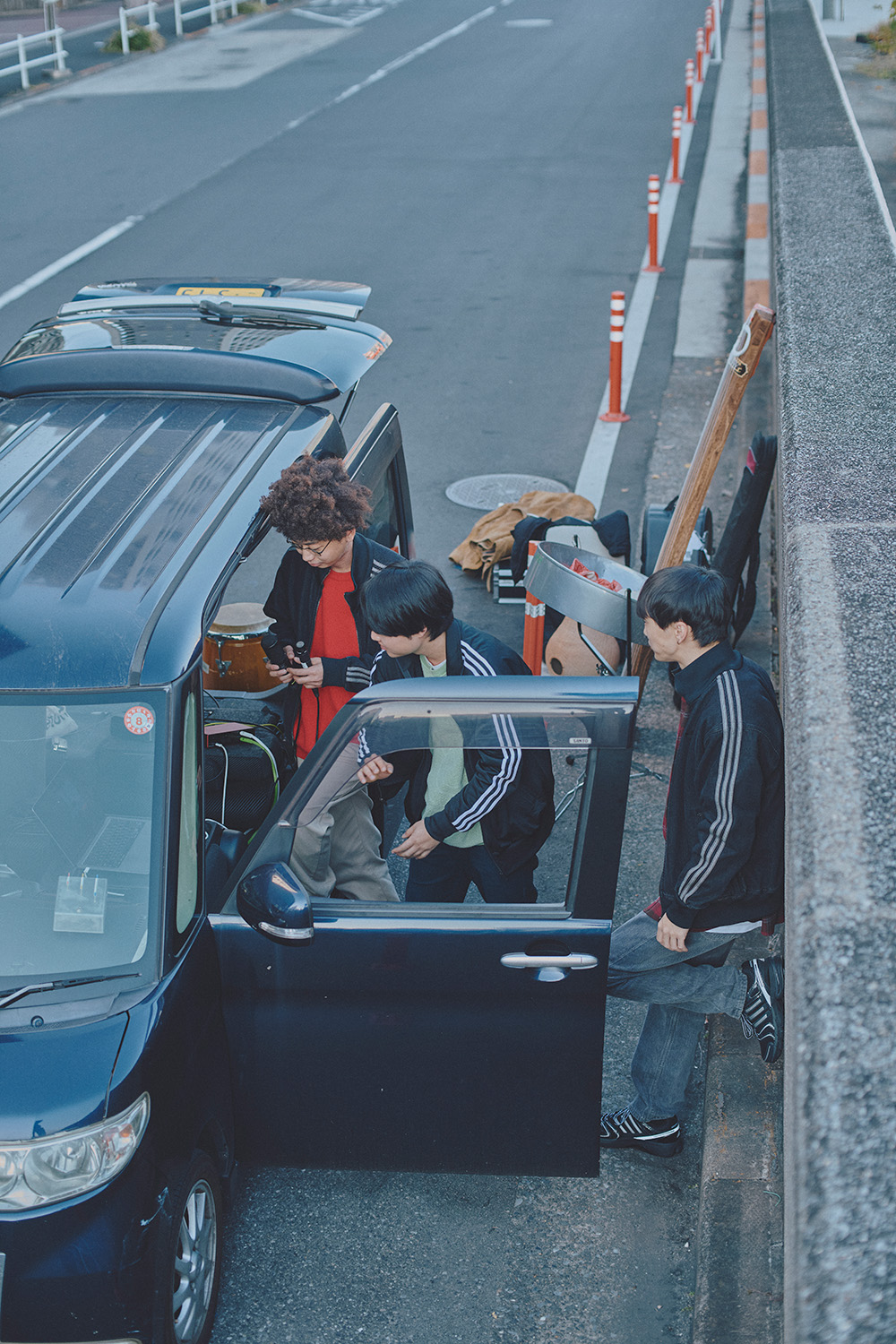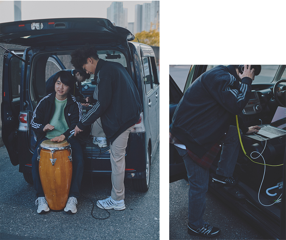 「でも、コロナが終息して、だんだんスタイルが変わってきて。今はDaidoが家で8割程度デモを作ってきて、みんなで集まることが多くなりましたね。仮で入れていた打ち込み音を、持ってきた楽器を演奏して生音に変えたり。即興で音楽を作るのではなく、最終調整を車の中でやることが多くなりましたね。どこを生音に変えるか、どこの打ち込みやシンセサイザーの音を残すとか。そこの比率を探るのに、深夜のひっそりとした東京の路上は格好の場所なんです」(Yuta)