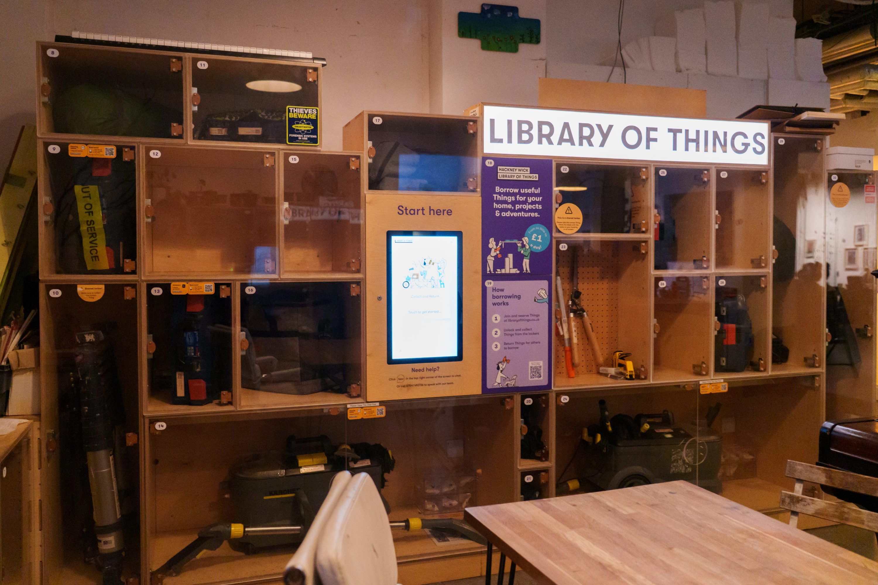 海外で増えつつある Library of Thingsもそう。工具や家具、楽器、キャンプ用品など、「たまにしか使わないけれど、ないと困るもの」を借りられる仕組みです。必要な物が倉庫から届くのではなく、地域の拠点として運営されているのも特徴。ロンドンに住む妹家族が利用している Library of Things は、1935年に建てられた公衆浴場を改装した複合施設の一角にあります。カフェやバー、スタジオ、サウナ、イベント会場などが併設され、共有の場としての歴史が受け継がれています。