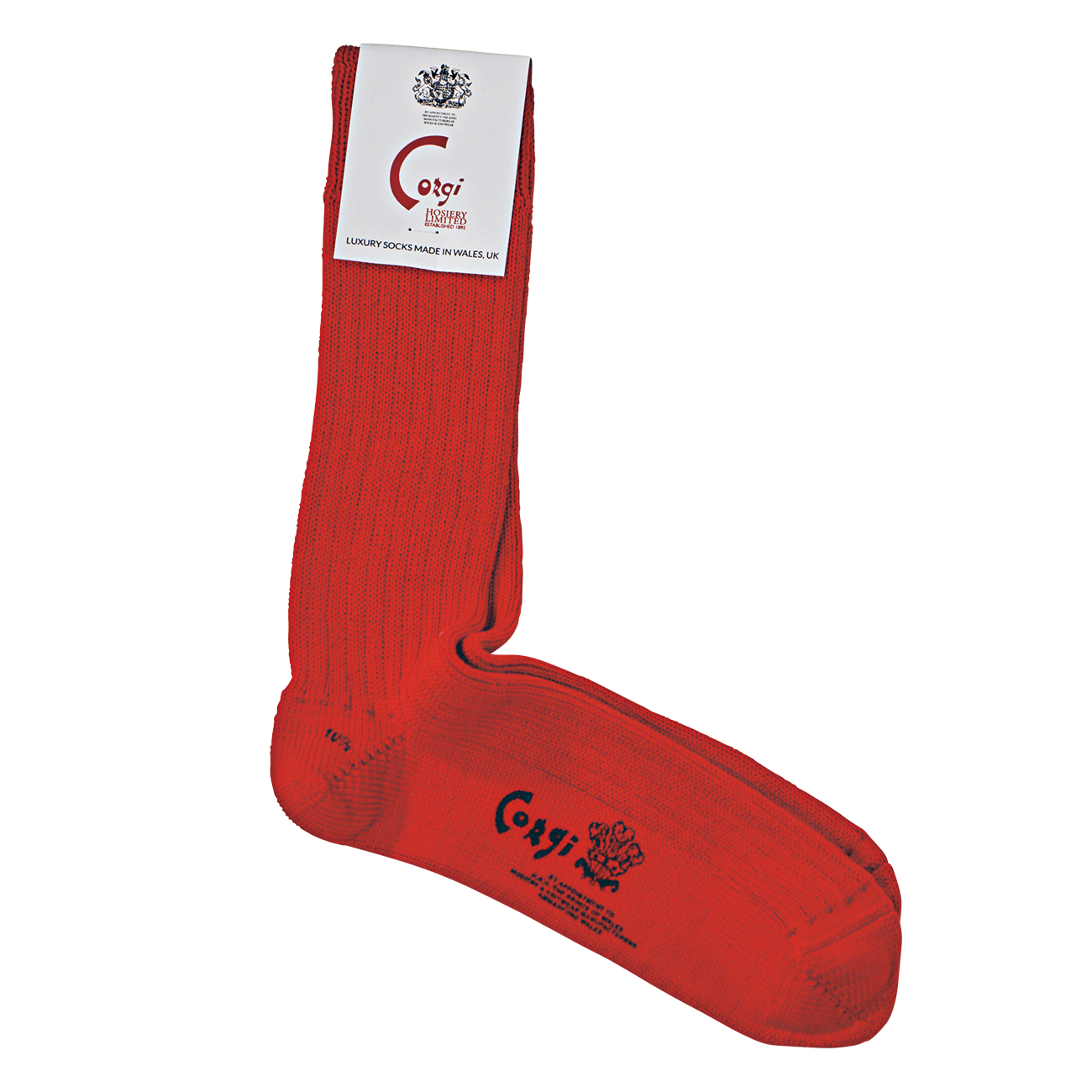 英国伝統ブランドが作る、赤のコットンリブソックス¥6,380(コーギー/ホームステッド リミテッド☎03·6455·4460)