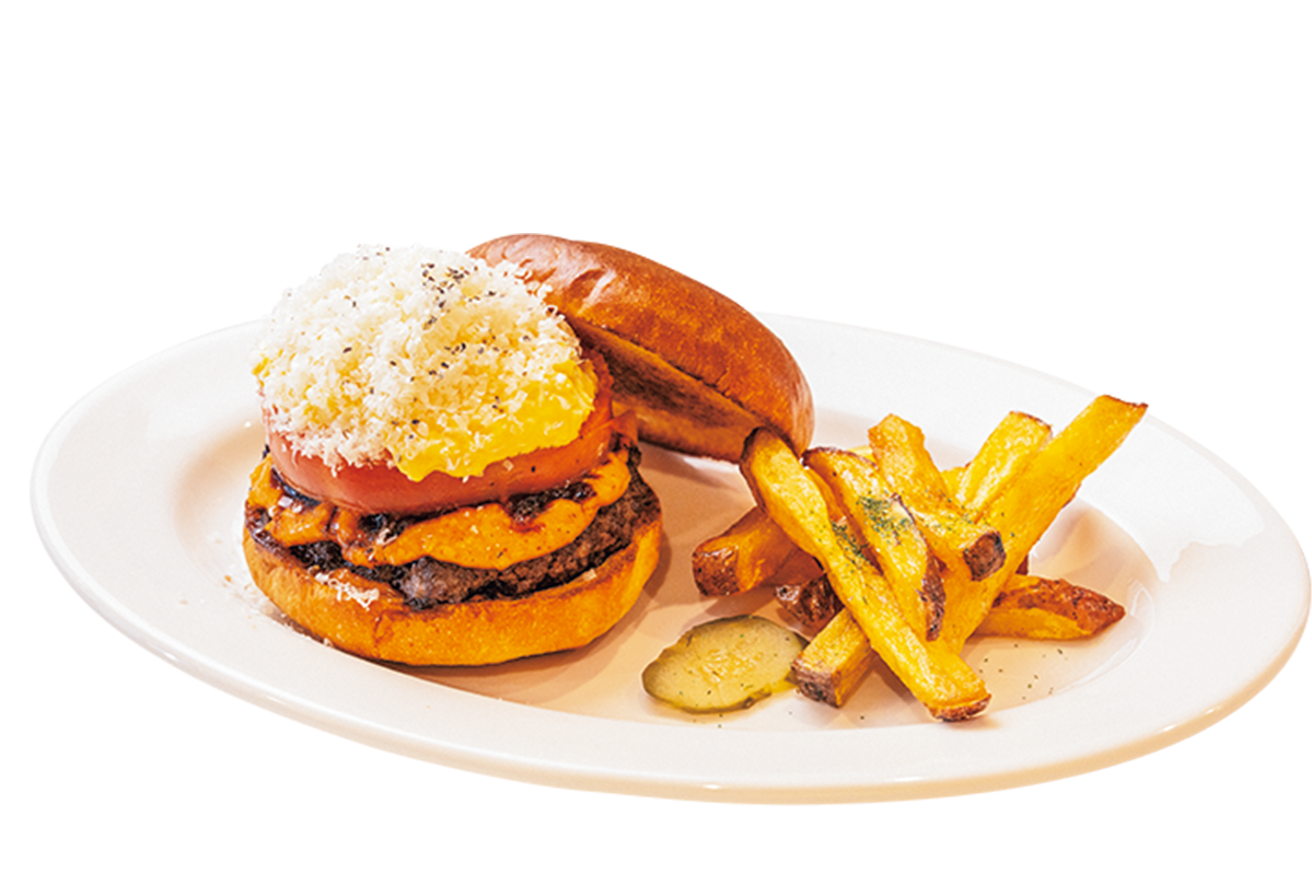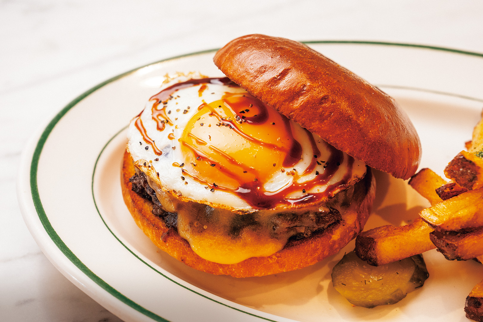 「人生最高のハンバーガーを更新したと思ったほど。オーナーの大矢貴博さんは、もともと焼き肉屋を営んでいたので和牛の扱いが上手なんです。お肉が甘い和牛はソースを含めて最高のバランス」(平野)。マッシュポテトを練り込んださっくり食感のバンズをはじめ、マヨネーズやピクルスも自家製。その探究心によって、訪れるたびに“美味しい!”の深化を味わえるのだ。