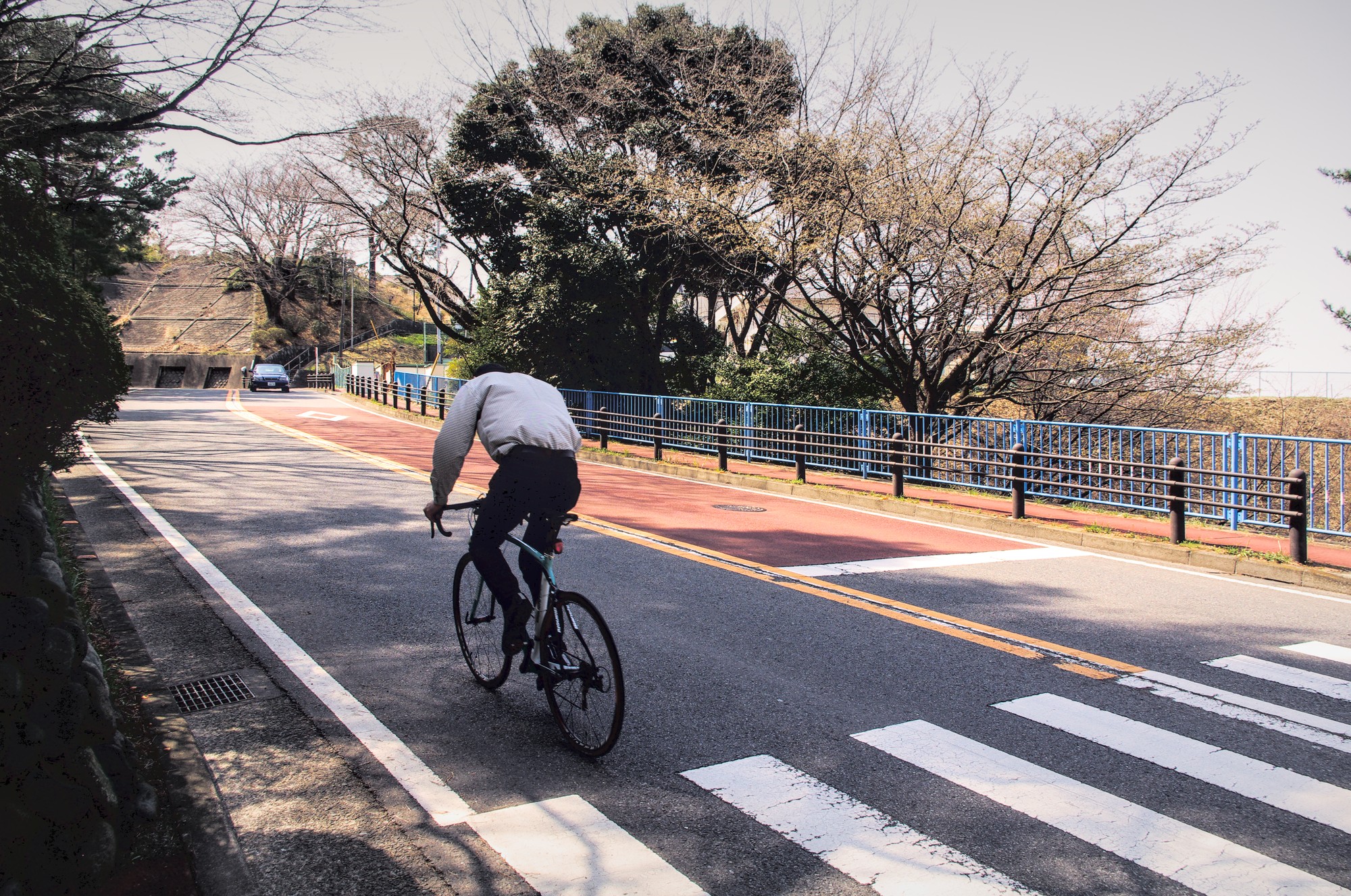 そのとき僕は、自転車に乗った青年が、苦労してあの坂を登るところを目にします。彼のシャツが風を受けてふくらむ瞬間、これはまさに描くべき絵に出会ったと確信しました!
