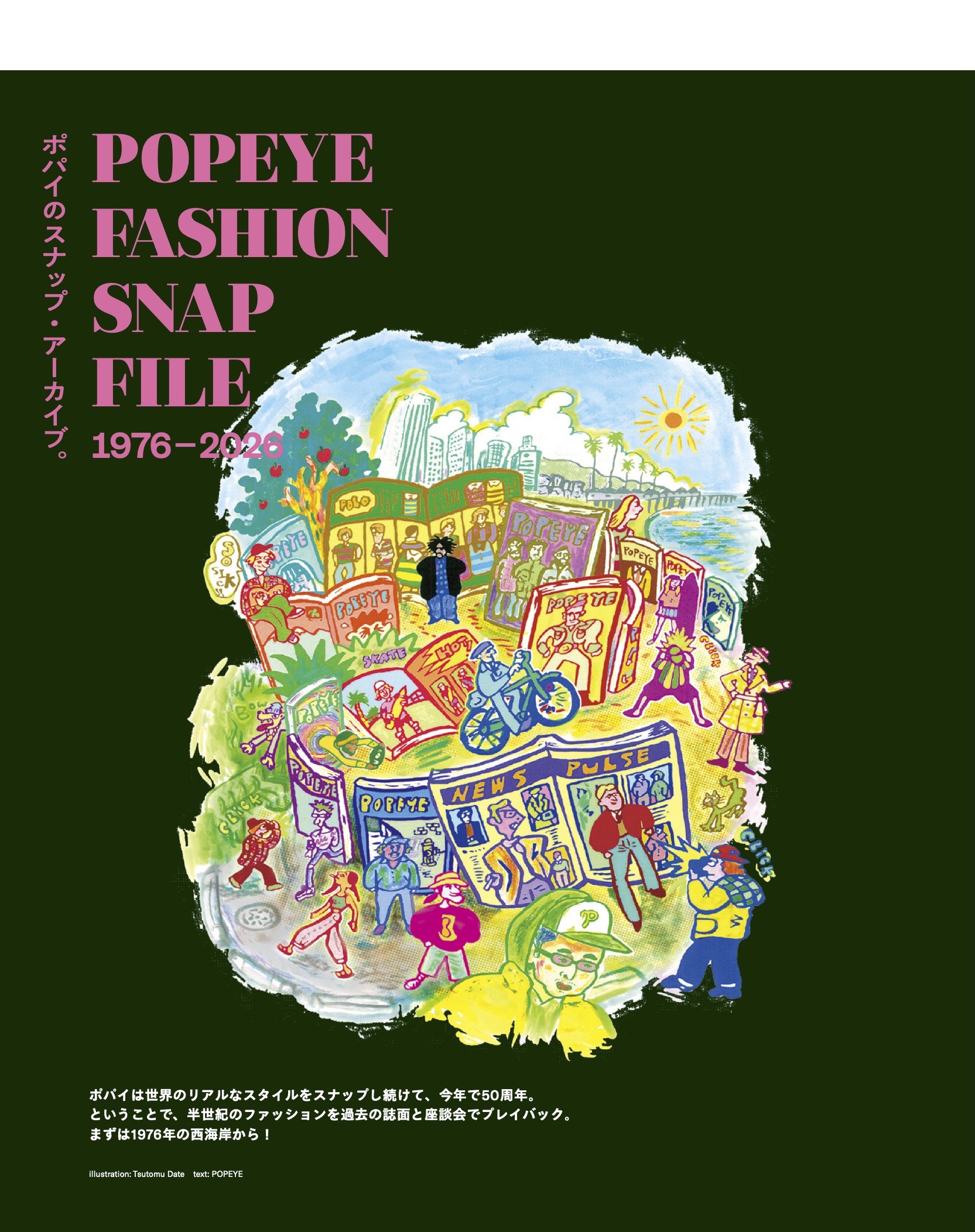 後半は、さらにスナップを紐解く座談会。70年代からポパイに触れ、80年代から本誌でスタイリストとして活躍してきた喜多尾祥之さん、ポパイと同い年の『BEAMS』に22年間在籍した〈Unlikely〉デザイナーの中田慎介さんをゲストに招き、編集部員たちと共にあれこれと。思い出深い誌面や企画、エポックメイキングなブランドやスタイルを紹介しています。