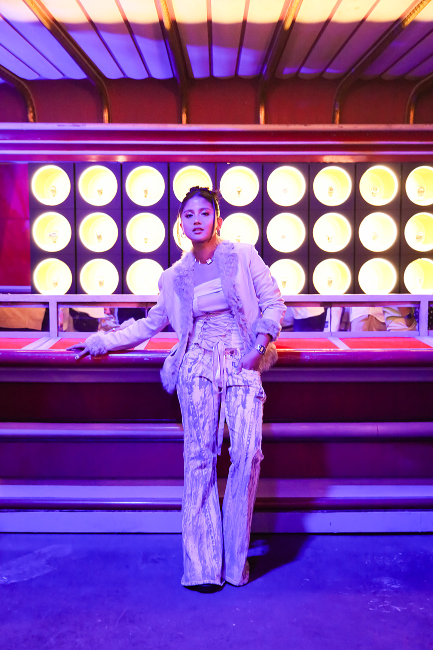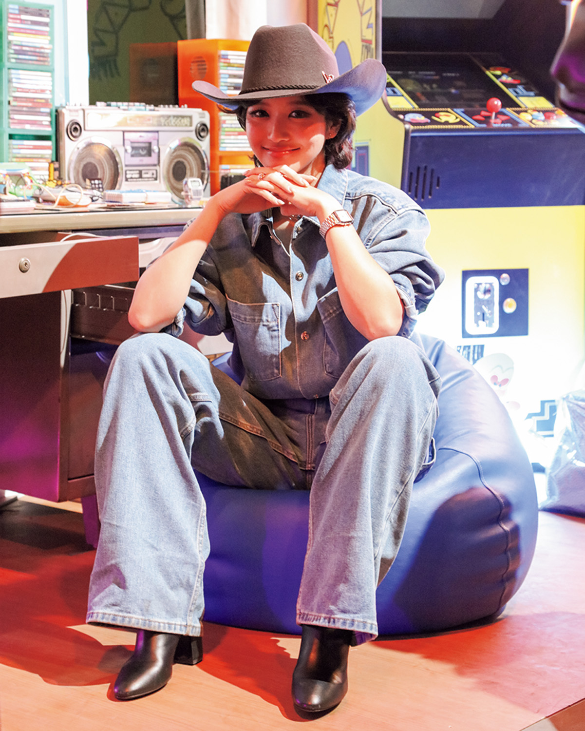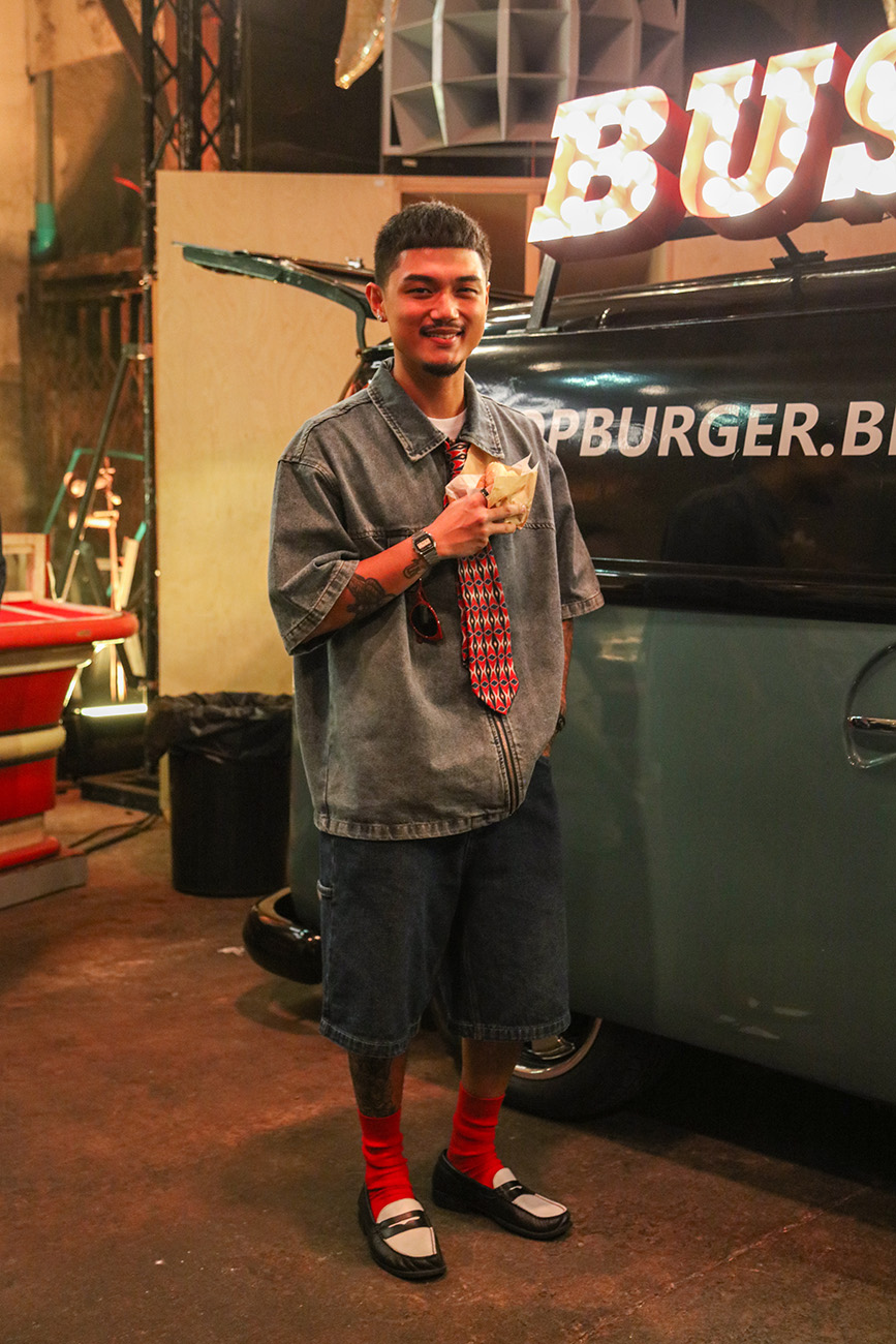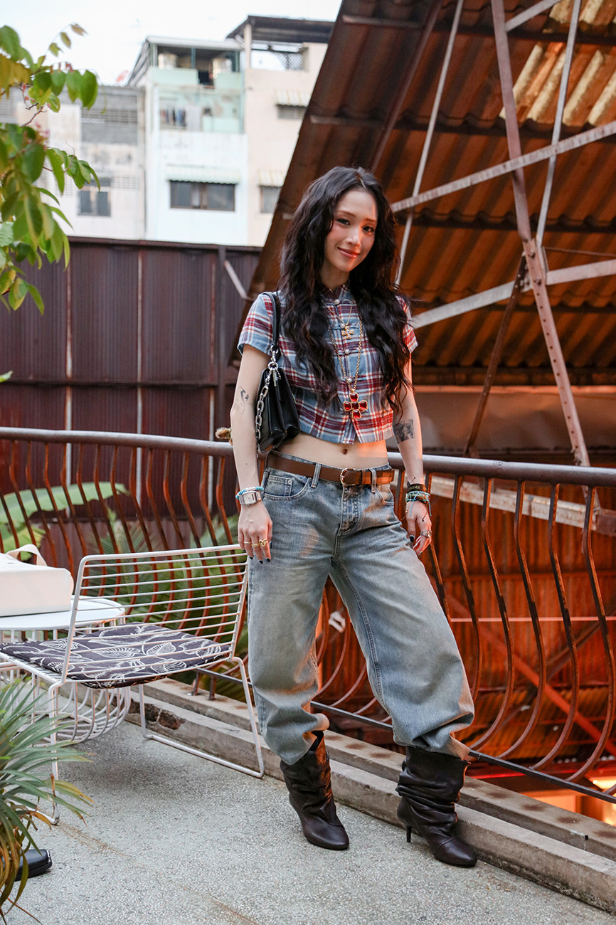 バディ・リー人形のようなデニムセットアップ&テンガロハット姿が、会場でも一際目を引いたジュネイパーちゃんはバンコク拠点の女優。昔はBNK48のメンバーだったこともあるからか、彼女の周りは常に人だかりができていた。