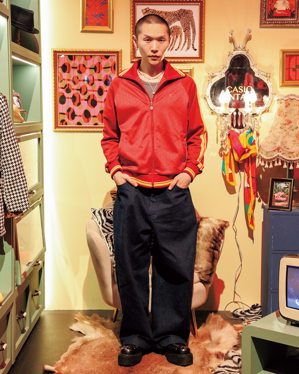 ウォン・カーウァイの映画に出てきそうな雰囲気抜群の彼は、バンコク拠点のモデル。襟付きジャージの着こなしがここまで様になるのは、正直スゴい! これぞ、タイ流のスポーツミックスか?