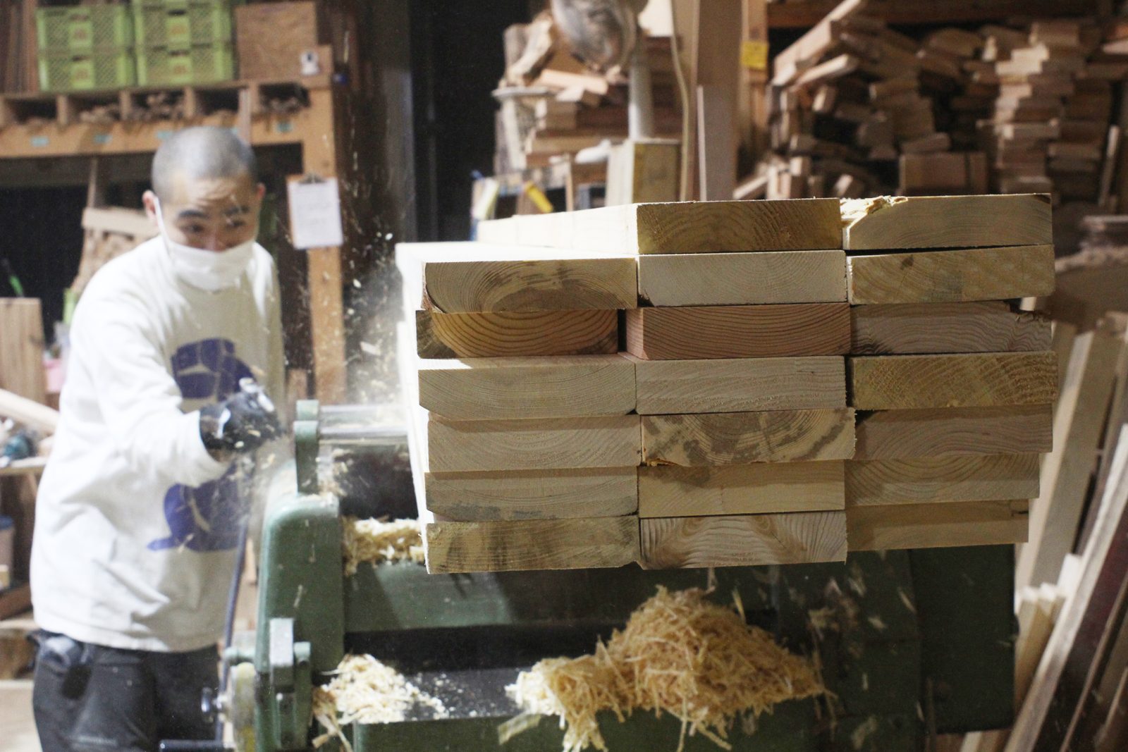 もともと左官職人だった水口泰基さんが、2007年に立ち上げた工務店。横浜市南区の旧米軍ハウスが位置する高台に突如現れる立地もさることながら、驚くべくはその規模感。地下から3階までさまざまな樹種の木材や加工機がびっしり詰め込まれている。今回は若き工場長、安藤翔平さんにレクチャーいただいた。