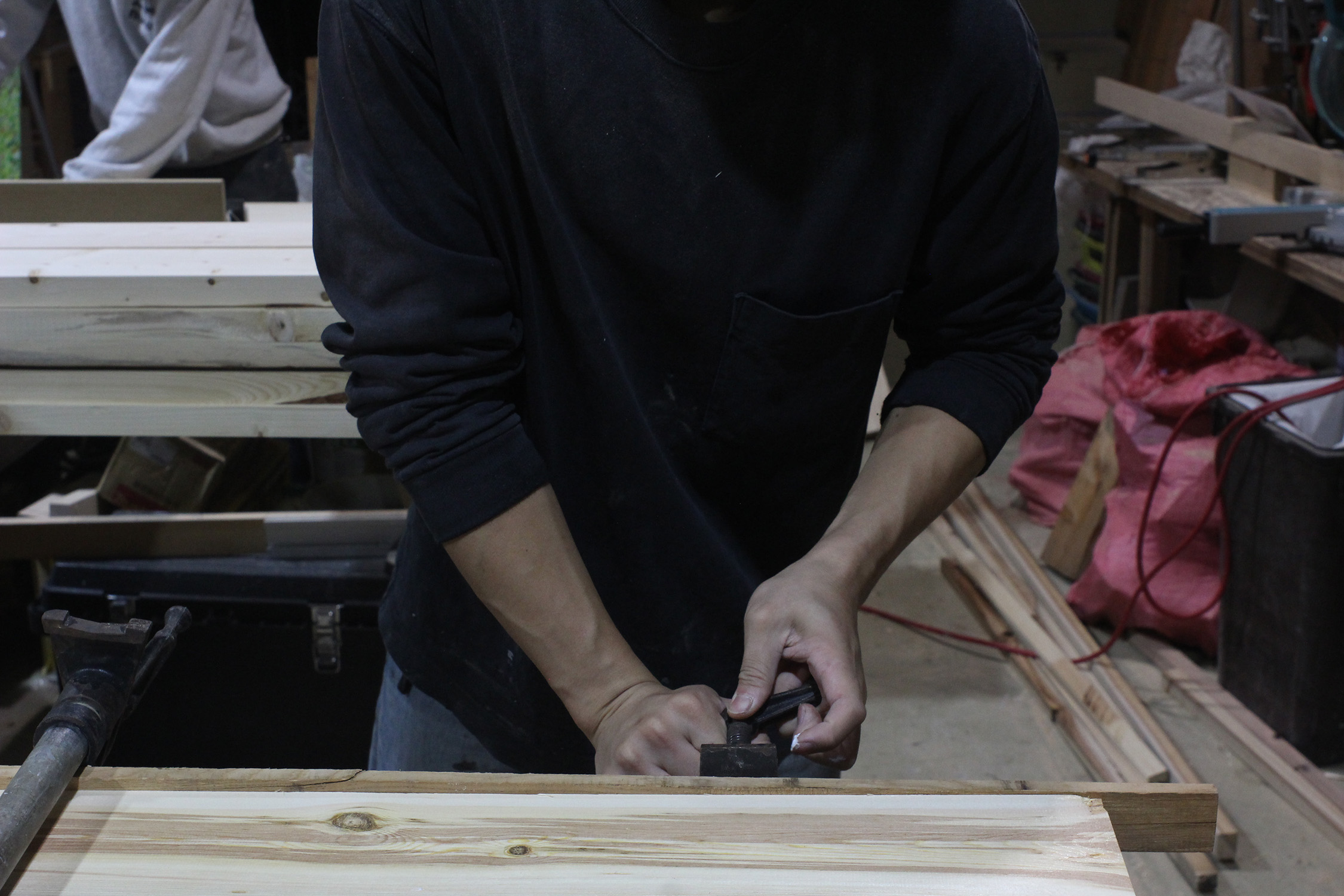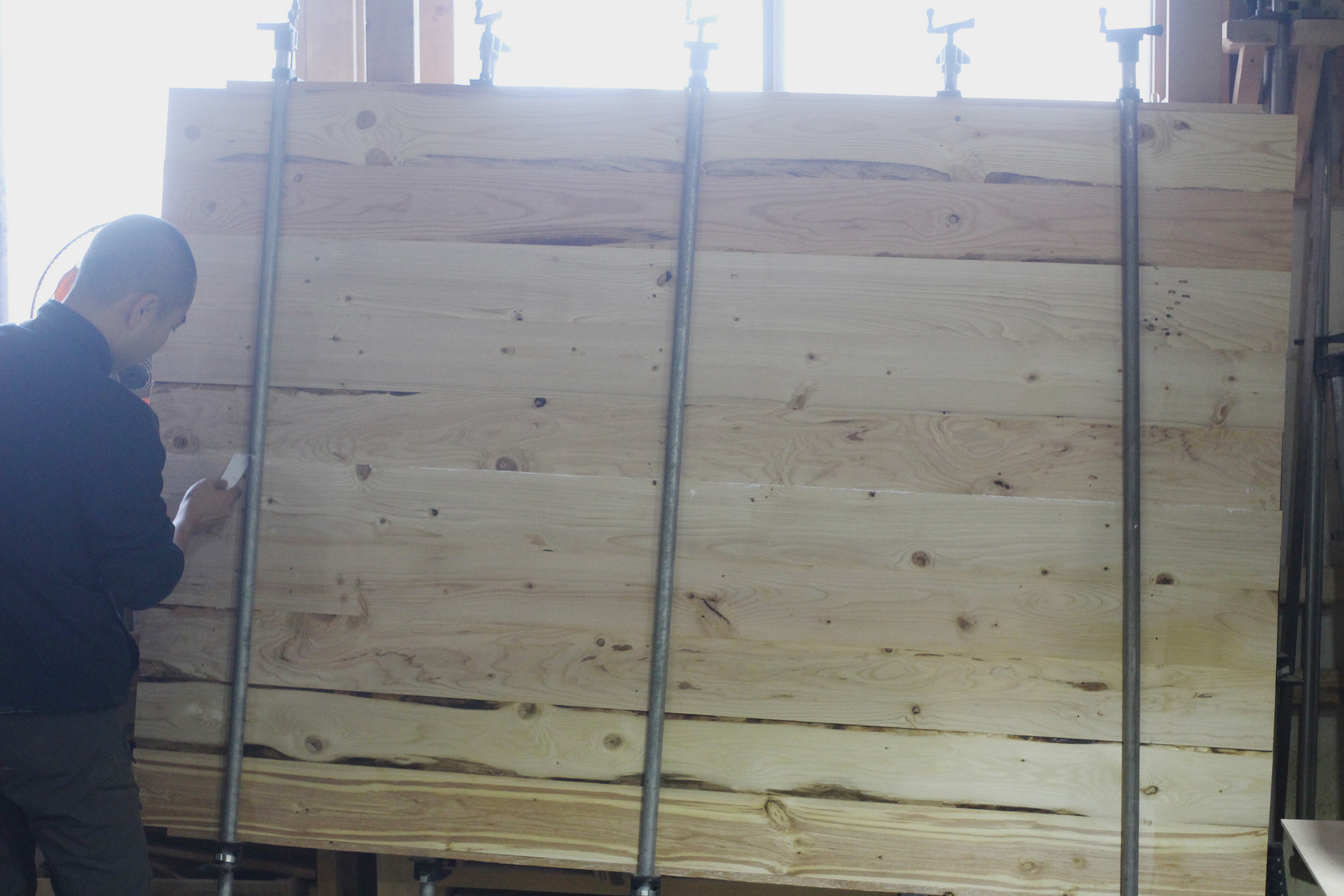 ・1日目 天板と脚の材料選び、製材、天板の張り合わせ