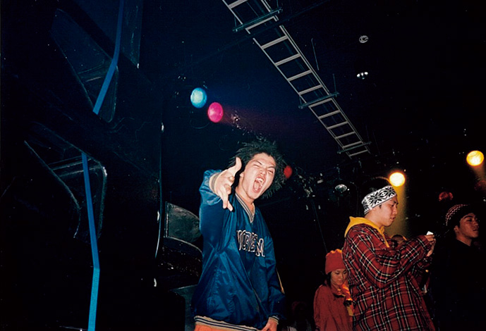 「高校2年の修学旅行でチャンピオンのスウェットのセットアップで寝てるヤツがいて、『もしかしてヒップホップ聴いてる?』って声をかけたのが、初代DJのDJ Shige。彼に『友達の兄貴がEAST ENDってラップグループをやってるけどライブ行く?』と言われて、初めて日本語ラップのライブを観ました。カッコいいダンサーはみんなブレイクダンス上がりだけど、俺は小学校の頃に上達しなくて心折れてるし、ラップのほうが目立ってモテそうだしやってみようと」