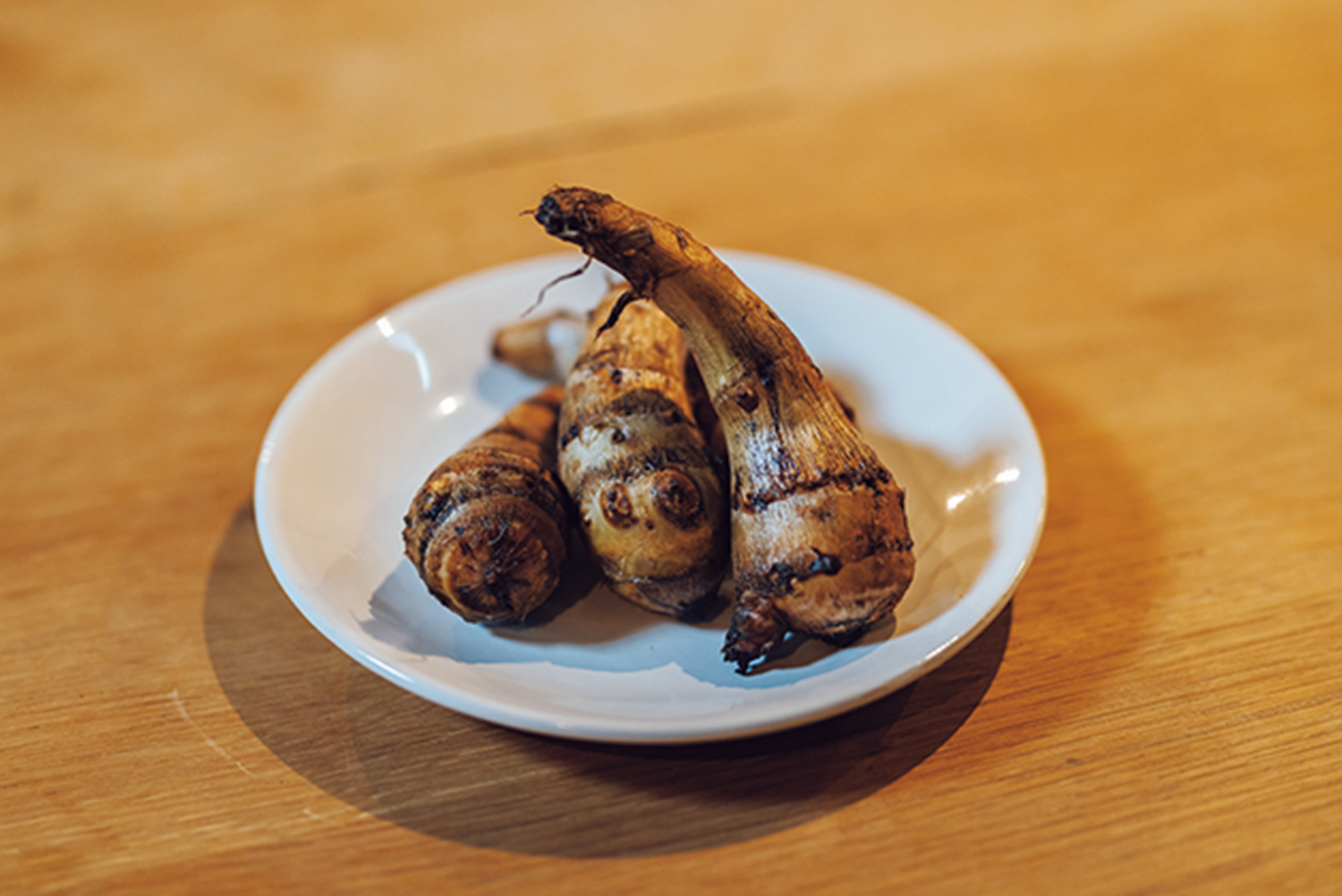 室町時代から400年以上にわたり伝わる、山形県の里芋。佐藤家が一子相伝で作り続けてきた、門外不出の種。「現在は20代目の佐藤春樹さんが手掛ける、在来種のスター的存在です。しっとりした食感が魅力」