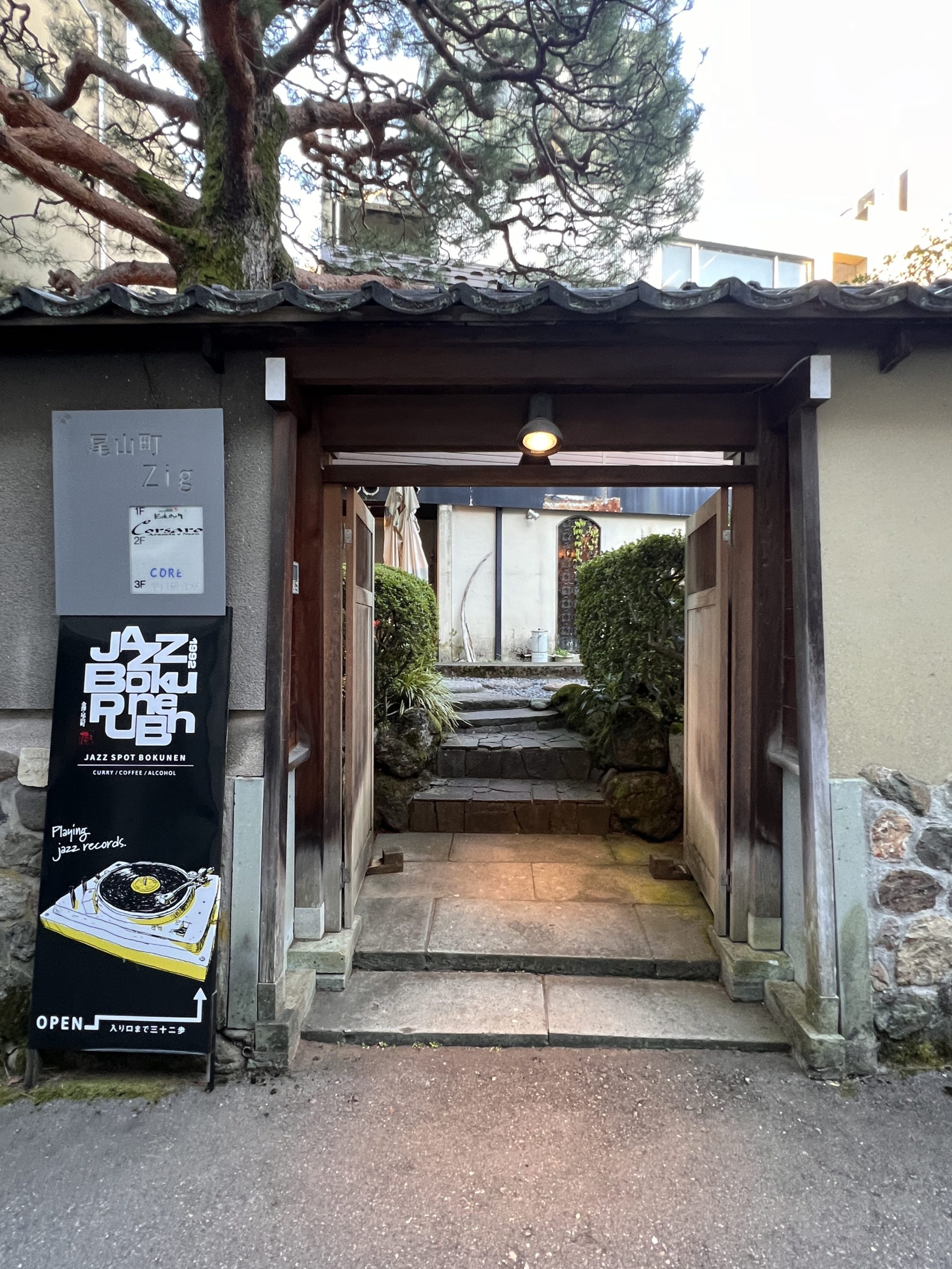 まず訪れたのは『ジャズ・スポット穆然』。地図で示されたビルに到着すると、築地塀が長々と立ちはだかり、面食らった。かつて前田家の御典医屋敷だったり、料亭だった、その名残らしい。門を見つけて恐る恐るくぐると、堂々たる松を生やした日本庭園。大きな岩の敷石を忍者よろしくぴょんぴょん飛び越え、「本当にここであってるのかしら?」と不安になるまで進んだ頃、ようやく店の入り口が見えてくる・・・といったプロローグからして傑作な店だったが、注文したポタージュ・カレーも異様に美味い。スプーンを使う手が止まらない。皿が空になる頃にはノドグロは忘れていた。