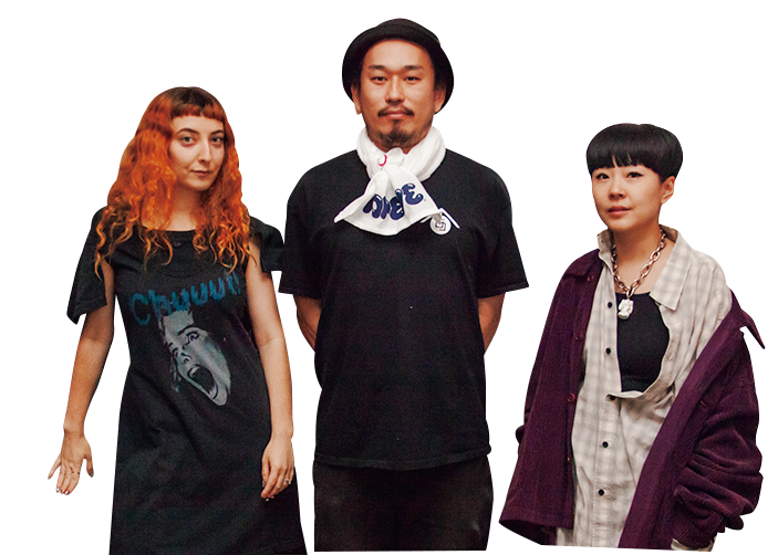 オーナーはNYの別の日本酒バーの同僚だったシンタロウさん(中)、ユリさん(右)と、シンタロウさんのパートナーで〈COMME des GARÇONS〉や〈UNDERCOVER〉、〈JUNYA WATANABE〉、〈ISSEY MIYAKE〉などのコレクターとしても知られるアリアナ(左)の3人。