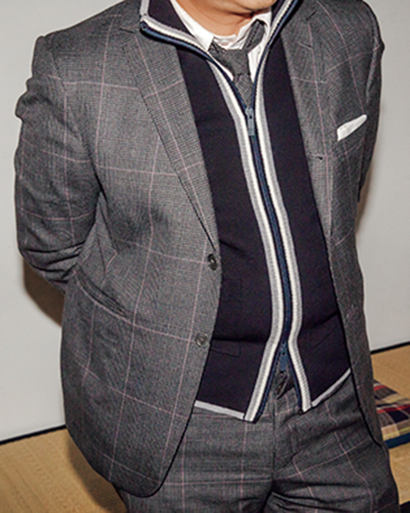 オーダーメイドした〈Thom Browne〉。「彼らのファッション性とテーラリングを両立する素晴らしい仕事がわかる一着」
