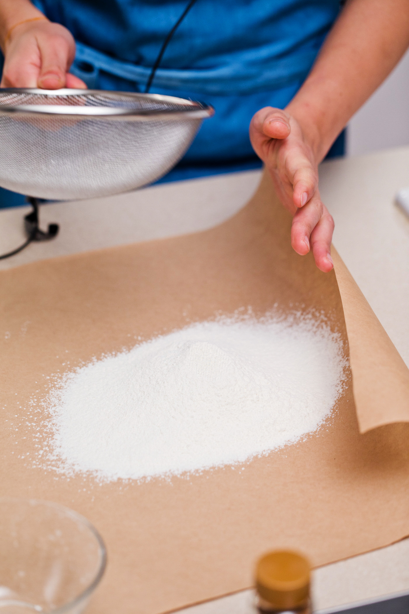 小麦粉をふるう。