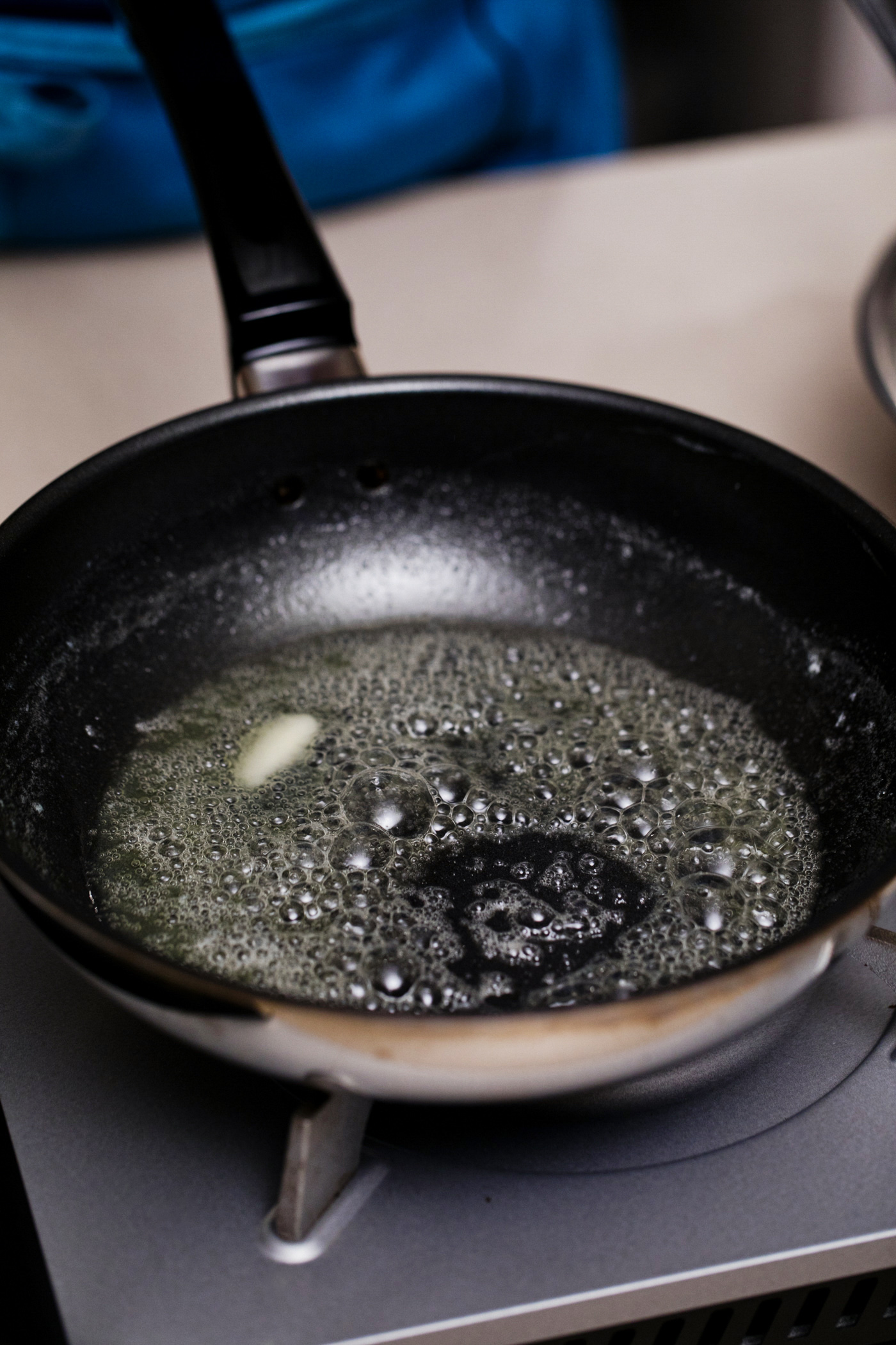 バターが全部溶けたら生地を流し込む。