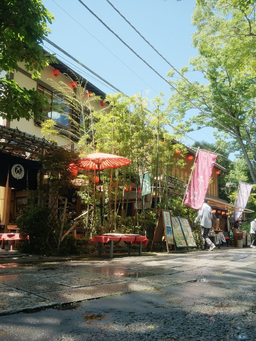 初めてロケハンで深大寺を訪れたとき、その美しさに驚きました。境内を歩くと、まるで秘密の魔法の場所に足を踏み入れたような、凛とした気分になります。それはもしかすると、こぢんまりとしていて、小さな谷間にひっそりと佇んでいるからかもしれません。周囲の公園や植物園は、その感覚をさらに高めていますし、美しいお寺、そしておそらくそれ以上に周辺のお店や蕎麦屋からは、時代を超えて培われた日本の雰囲気がたっぷりと漂っています。それは、僕がいつも探し求めているものです。さらに素晴らしいのは、深大寺が生き生きとした観光地でありながら、生活の場としての地元らしさという魅力も持っていることです。