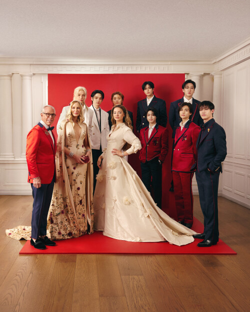 2024年5月にNYのメトロポリタン美術館で開催された『メットガラ』には、K-POPグループのStray Kidsが〈トミー ヒルフィガー〉の衣装で登場。俳優のマデリン・クライン、ヒルフィガー夫妻と一緒に。
