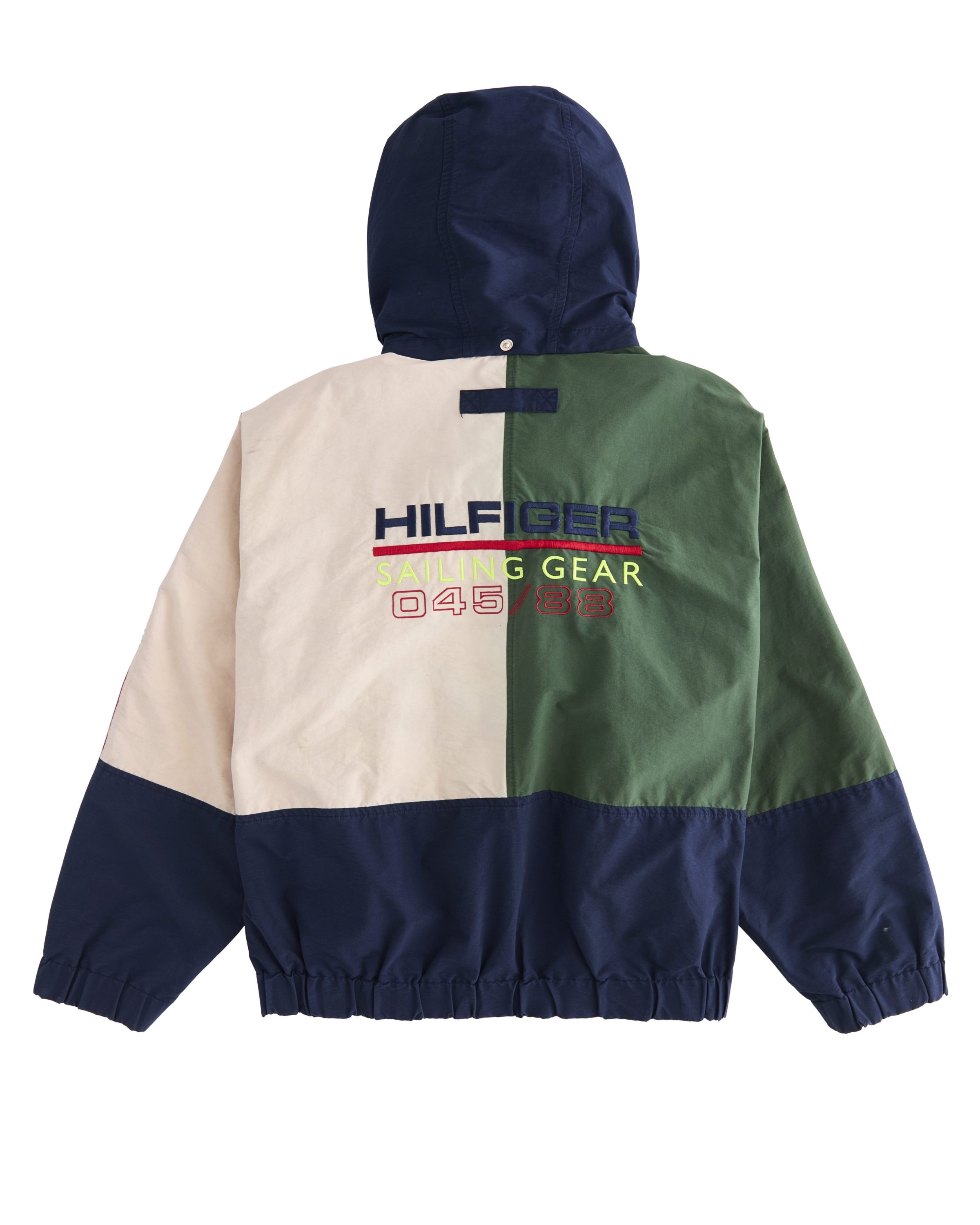 幼い頃から海やセーリングを愛してきたトミーさん。航海の情熱を象徴するセーリングジャケットは、見ているだけで楽しくなるカラーブロック。ネイビーを軸に、フロントはヴィヴィッド、バックはシックなトーンというのが心憎い。