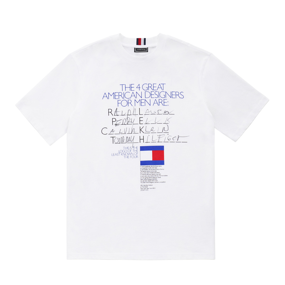 1985年、〈トミー ヒルフィガー〉が誕生。初のシグネチャーコレクションを発表。ボタンダウンシャツやチノパンなどのクラシックアイテムにツイストを加えると同時に、大胆なマーケティングキャンペーンを展開。アメリカ広告業界に最も影響を与えたと評されるアートディレクター、ジョージ・ロイスが手掛けた“ハングマン広告”(欧米では馴染みのある単語当てゲーム形式で作られた広告)をNYのタイムズスクエアに掲出したのだ。「THE 4 GREAT AMERICAN DESIGNERS FOR MEN」として〈ラルフ ローレン〉〈カルバン・クライン〉〈ペリー・エリス〉という人気ブランドと並べて、〈トミー ヒルフィガー〉を暗示。無名のデザイナーが巨匠たちと肩を並べていることを宣言した。