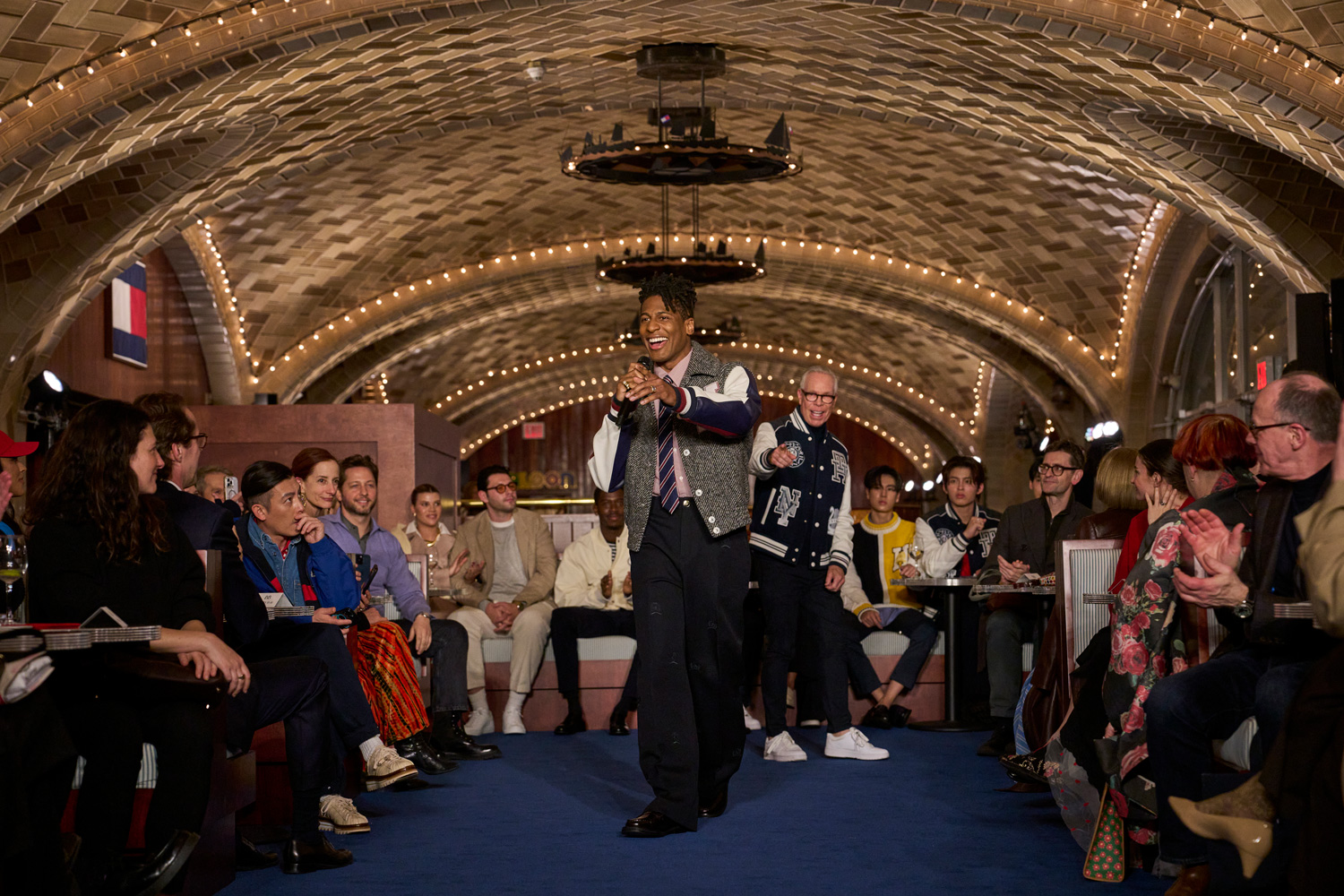 NYで行われた2024年秋冬のコレクションのショーのフィナーレには、ミュージシャンのジョン・バティステが登場してパフォーマンスを披露。ヒット曲を口ずさみながら会場を闊歩した。