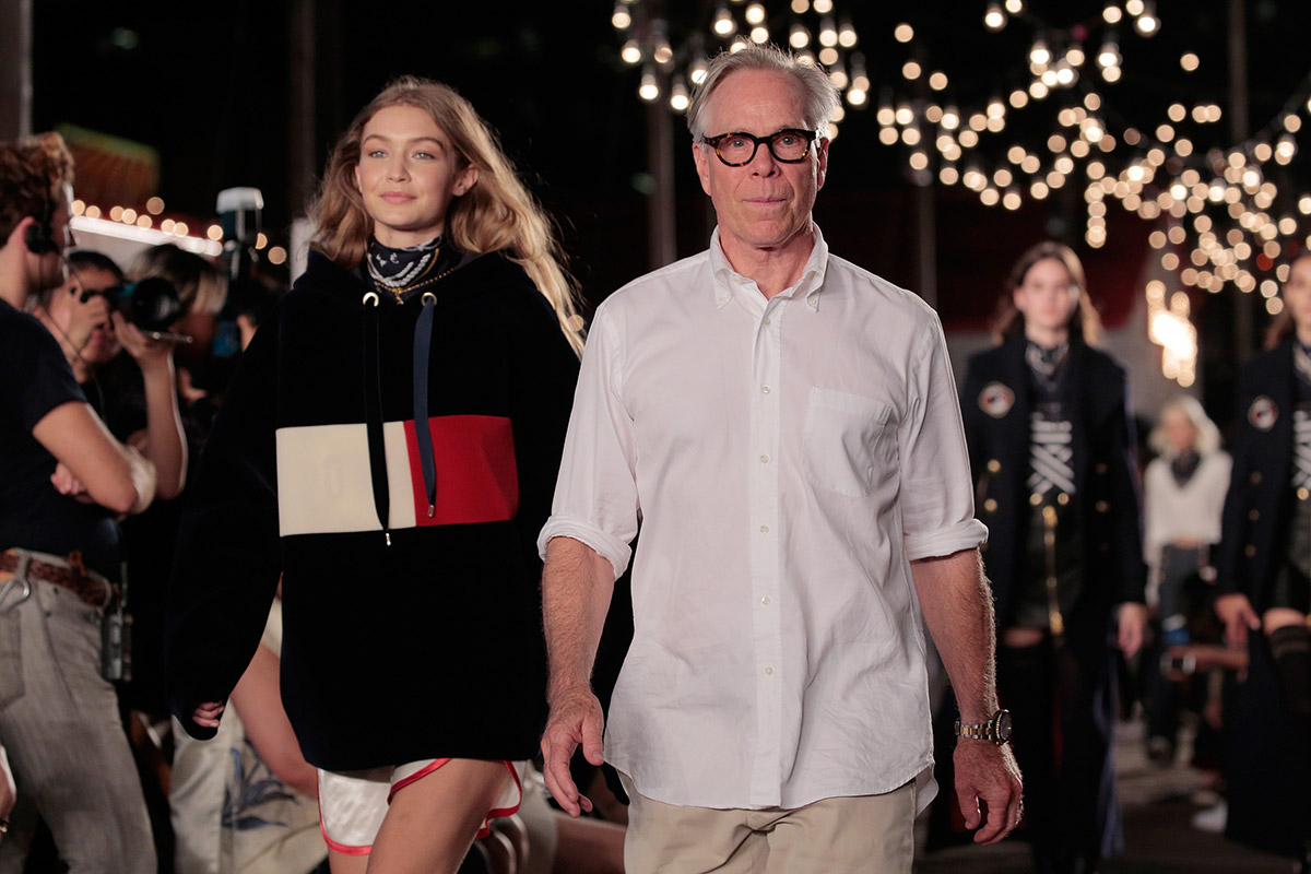 2016年にはモデルのジジ・ハディッドがグローバルアンバサダーに就任。NYで開催された同年秋冬のコレクションのフィナーレに、彼女がトミーさんと一緒に登場した際の一枚。
