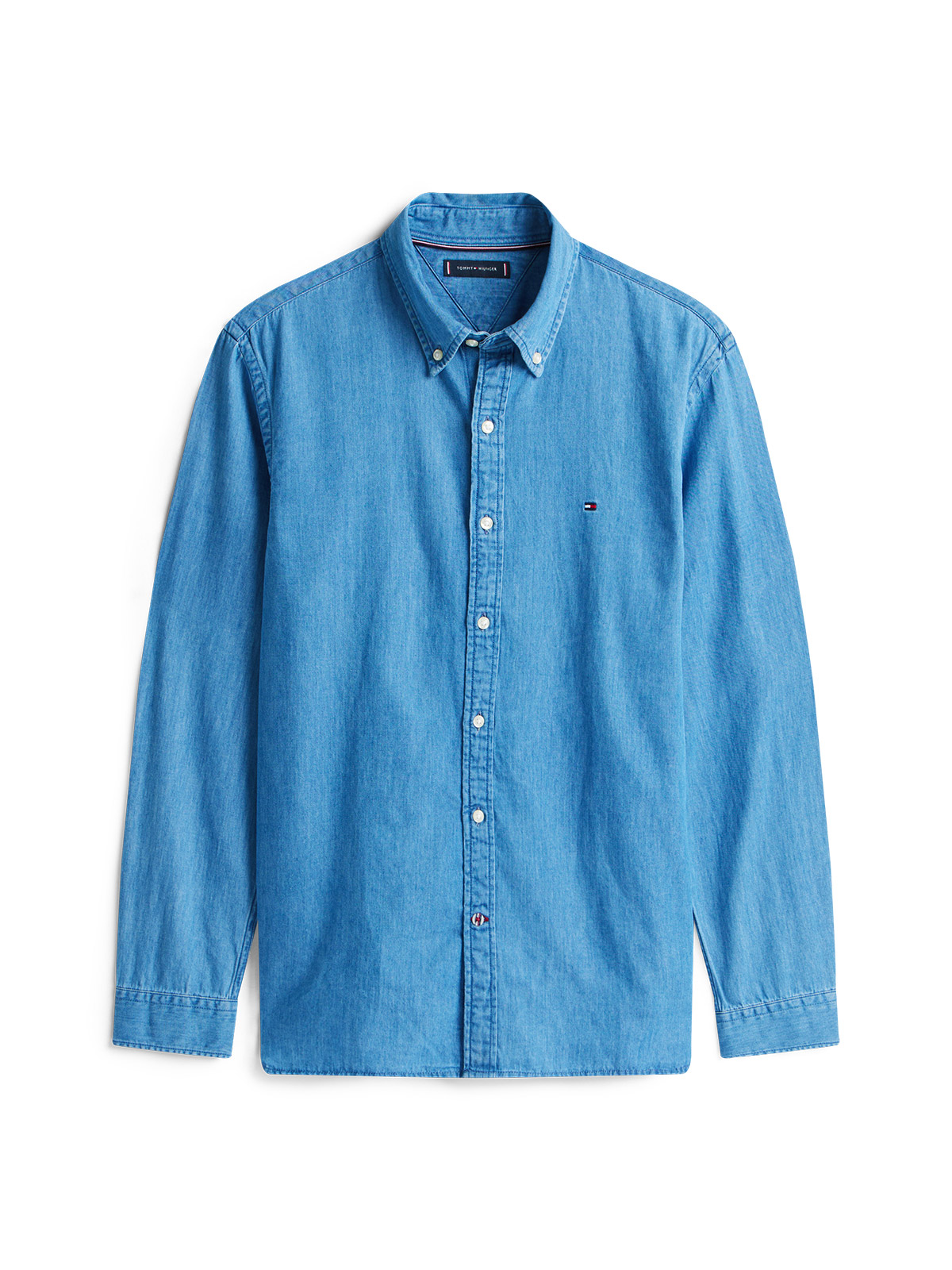 ネームタグ上には赤・白・青のストライプが施され、実は一番下のボタンホールのみ、赤のステッチに。ここにだけあしらわれたトミーカラーのボタンも見逃せない。着た人のみが享受して気分が上がる仕掛けは、まさにハッピーなツイストといえる。