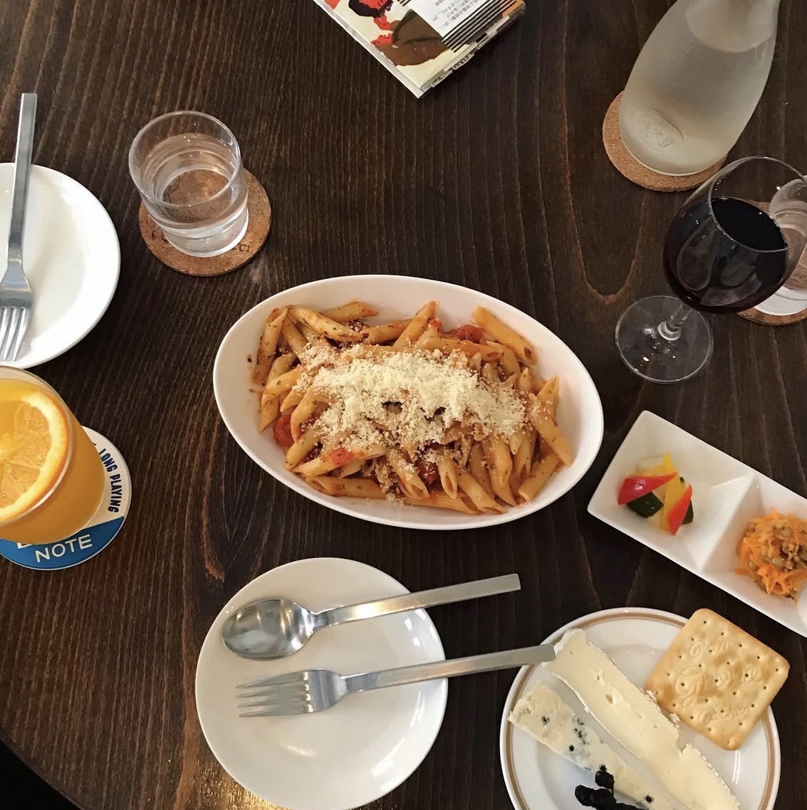 スピーカー、レコード、本、調理器具……と物は多いけれど、置き場所が的確で、全てに意味があり、店の道具として生き生きと回転している。だからとても清潔に感じるし、お客さんもこうしたアトモスフィアに触発されて、自然とエレガントな空気を作っている。秩序が美を担保するというのは『天神湯』も同じかもしれない。