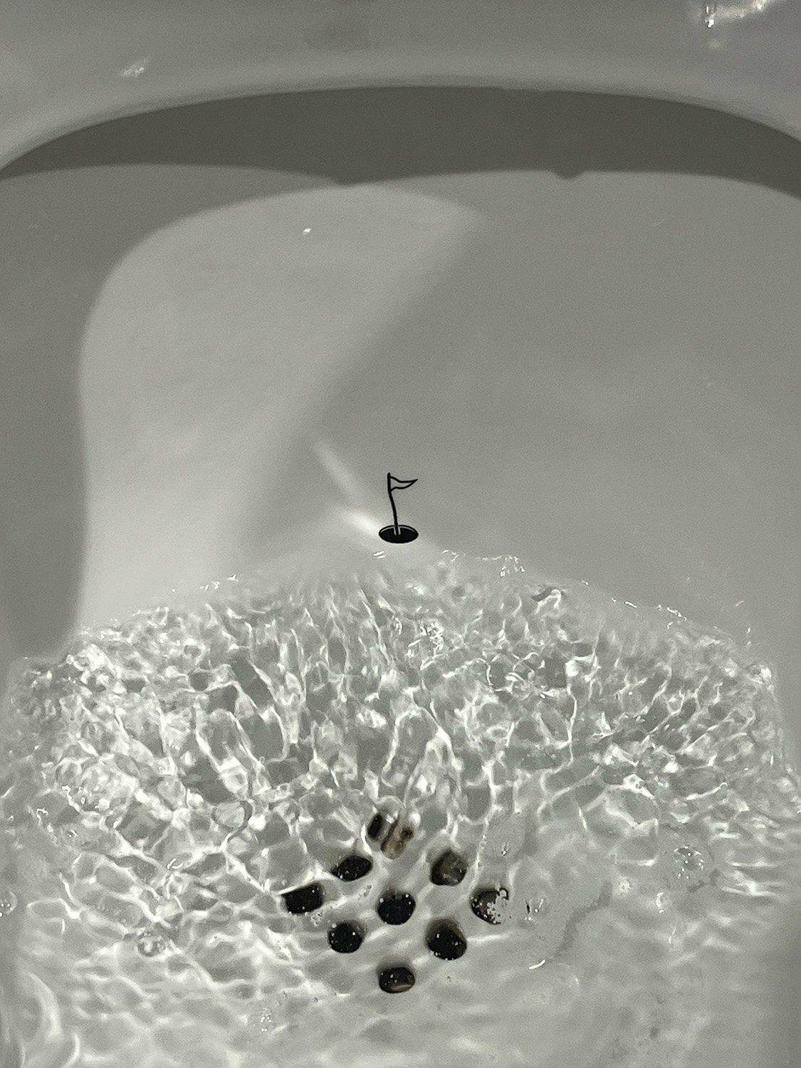 「狙い撃ち」したくなる本能的な心理に訴えかけるのが狙いだそうですが、実際に飛び散りが減少したとか。視線はシールへ向かい、照準を合わせて、ぴー。自然とそうなるから、まさに発案者の思う壺です。