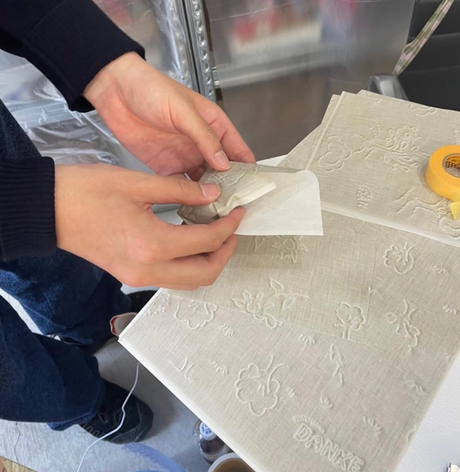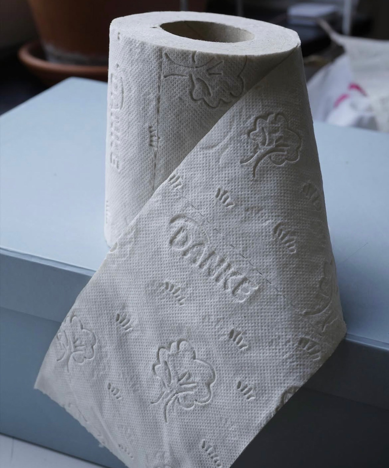10年ほど前にオーストリアの宿泊先で出会ったDanke (独語でありがとう)とエンボスが入ったトイレットペーパー。何に対してDankeなんだろう、とぼんやり考えながらお尻を拭いた思い出と共に2ロールこっそり持ち帰り、いつか何かしらで使ってみたいと大事に取っておいたものです。