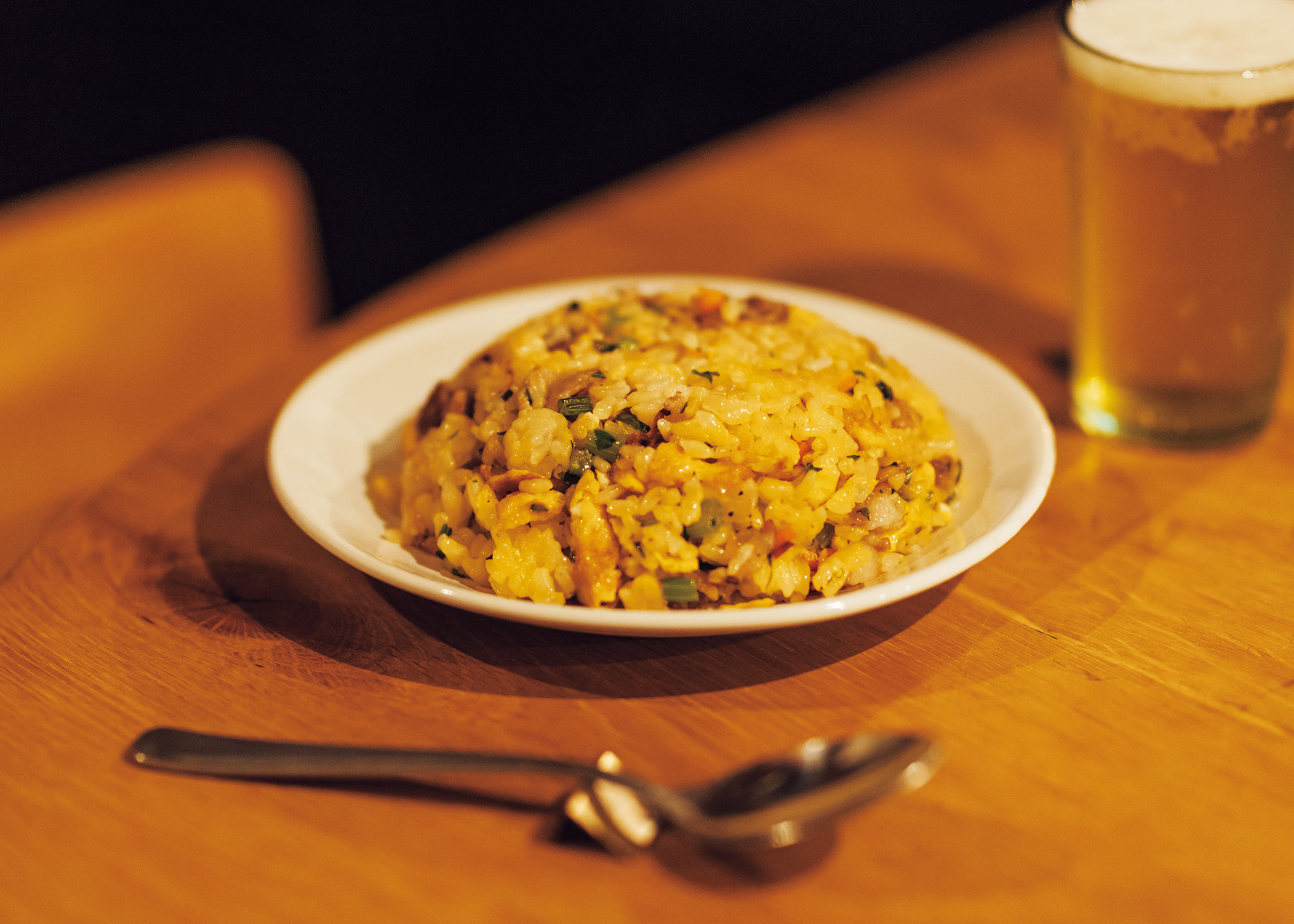盛り付けは、一度浅めの器に入れて平皿にひっくり返し、ドーム型に。パラパラかつしっとりしたご飯と、細かくカットした具材は相性抜群。セロリの香ばしさがこれほど合うとは! 卵1つ分あるボリューミーな炒り卵の満足感も十分。