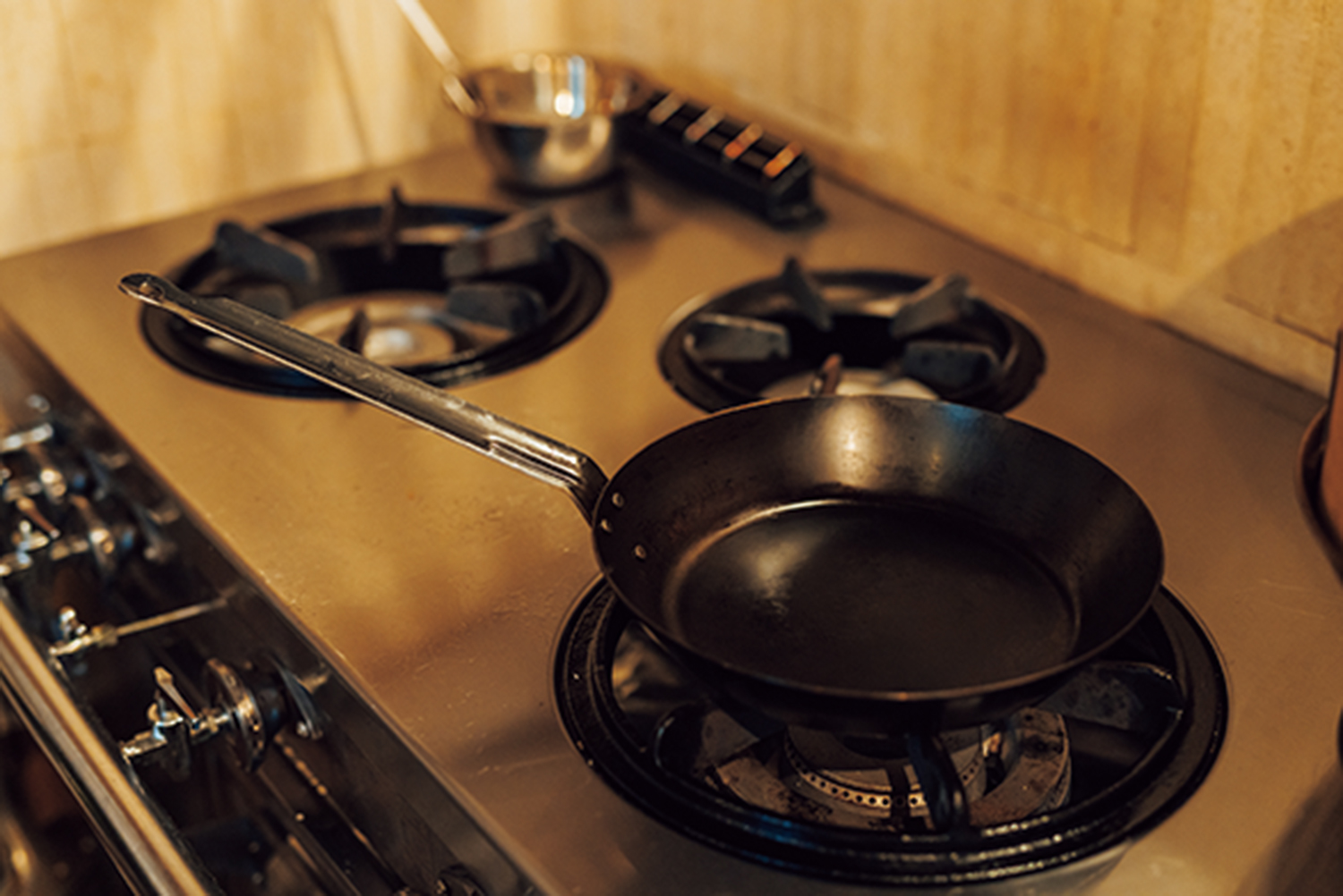 テフロンなどのフッ素樹脂加工でもいいけれど「あれば鉄のフライパンがおすすめ」と原川さん。「鉄だとスュック(焦げ)ができやすいですから。スープもより濃い茶色になります。アルミパンでもいいですよ」