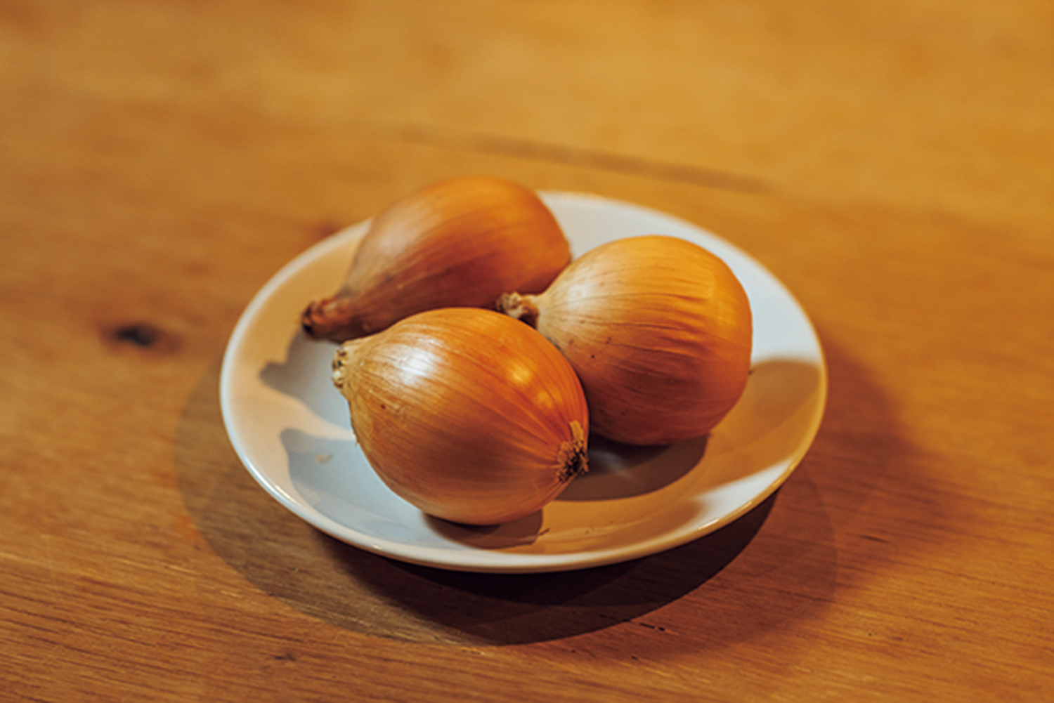 日本の玉ねぎ栽培の端緒となった札幌の在来種。もとは明治時代に札幌農学校のブルックス博士がアメリカから持ち込んだとされる「イエロー・グローブ・ダンバース」。味が濃く、加熱すると甘味が強くなる。