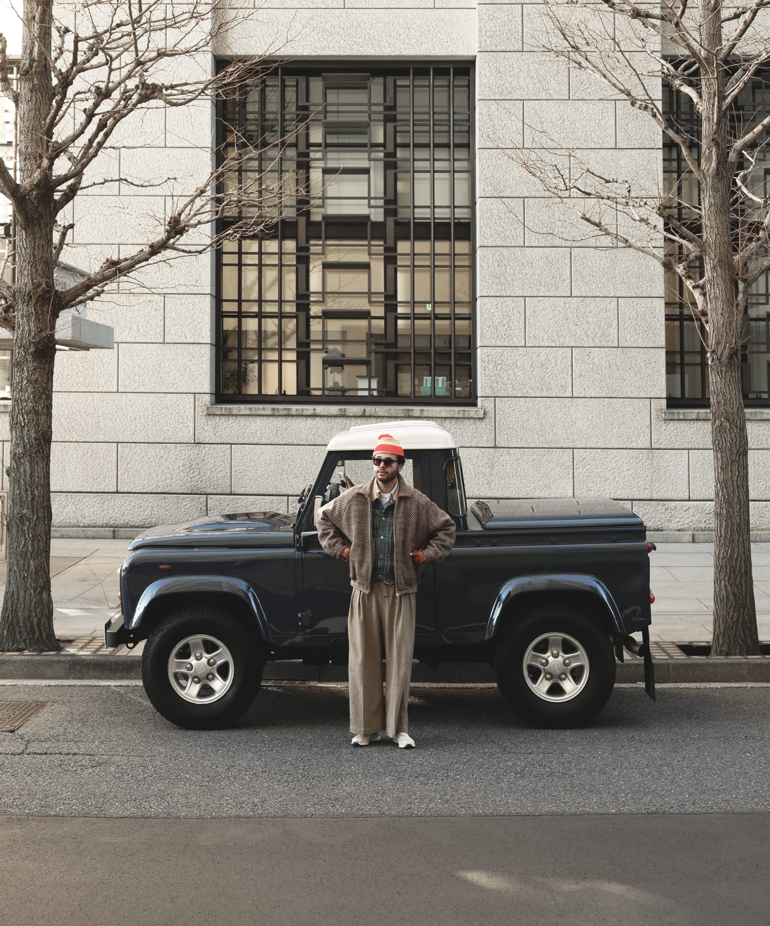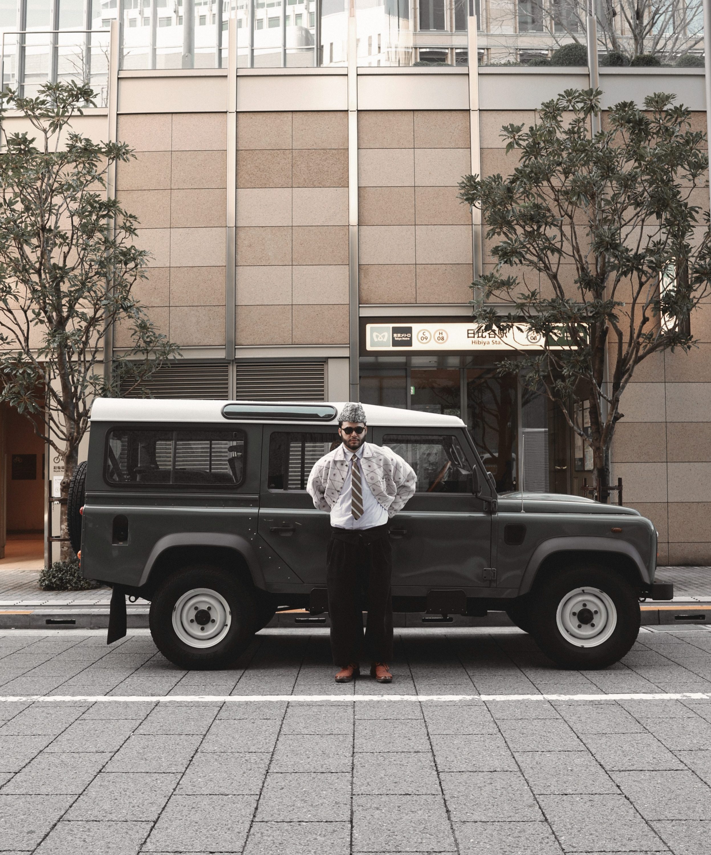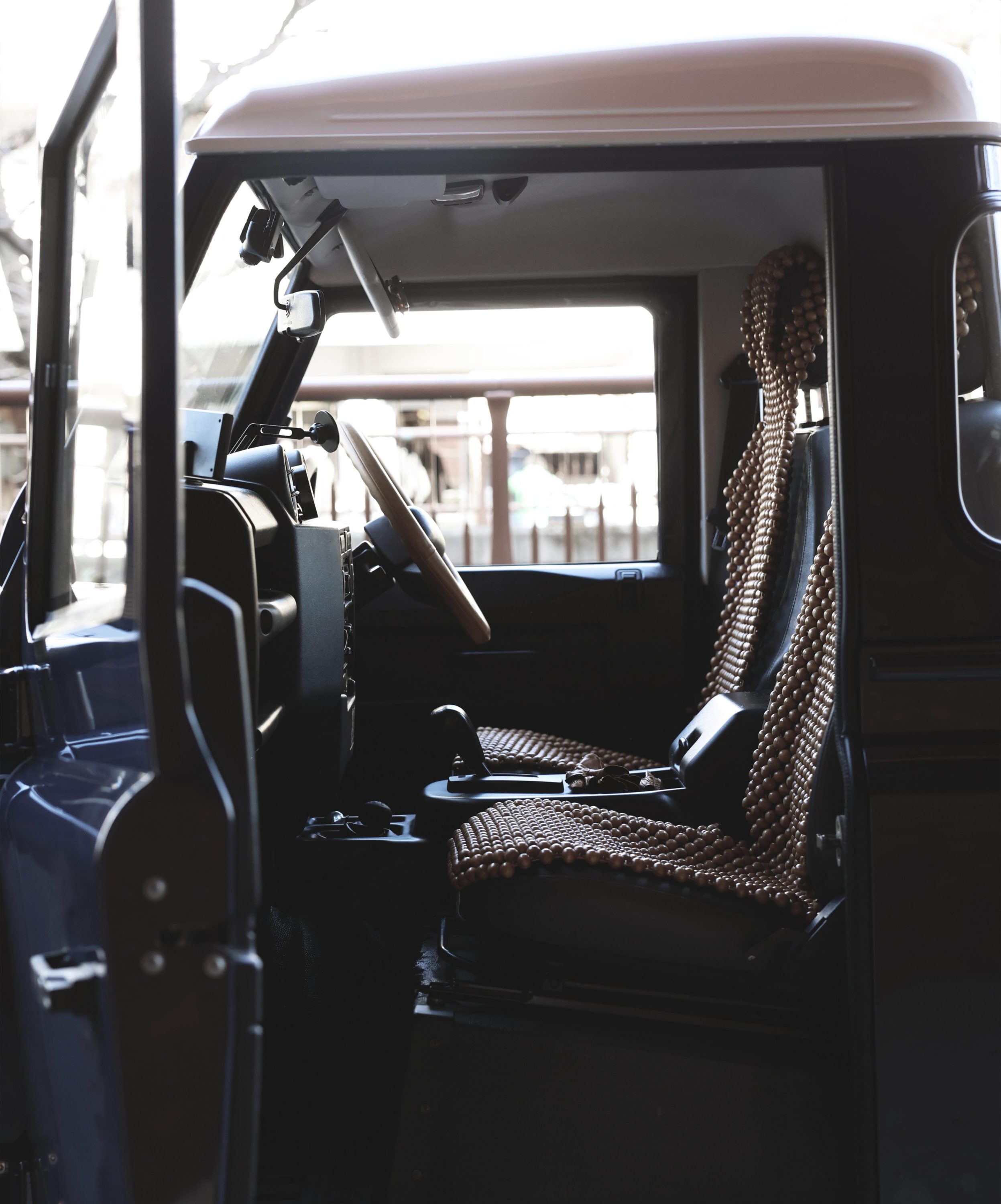 最初の車に迷いはありませんでした。ディフェンダーは長いあいだ、映画やドキュメンタリー、ラリーの映像、そしてあの独特なシルエットを通して、私の想像の中に存在していたのです。6年前に探し始めたとき、理想の一台を見つけるのは簡単ではありませんでした。最終的にイギリスから輸入することになりましたが、右ハンドル仕様は日本にぴったりでした。東京のガレージの協力を得てコンテナで到着し、数か月後には公道を走れる状態になりました。