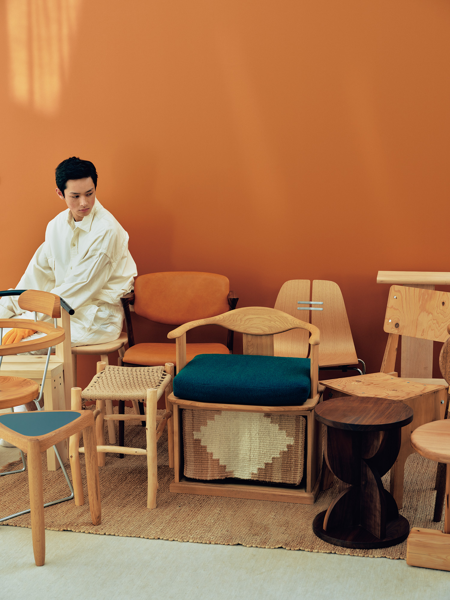 友人と椅子の話になるたび、「木の椅子がいいよ」と口癖みたいに言っている。なぜって? 答えは簡単。大抵が手頃だし、その素材感も手伝って、日本の部屋に馴染みやすい可愛げな佇まいのものが多いからだ。発端は、昨年末に訪れた〈ポスタルコ〉のお店。〈カリモク〉と共作した「スタッコ」シリーズのアームチェアの〝優しい山男〟のような存在感に心奪われて、「木の椅子、いいっすね」となったのだ。そこで色々と調べてみると、あるある。小さな工房から世界のビッグメーカーまで。いいなと思える椅子は、やはりウッドだった。さらに背中を押したのは、ジャスパー・モリソンやエンツォ・マーリといった著名な家具デザイナーが、日本の木工メーカーの優れた技術を使って作る、未来の名作椅子の数々。多くが10万円を切る、(椅子にしては)リーズナブルな価格で、デザインの良さは言わずもがな。これ、知らなかったなぁ。ということで、もし君が家具を買い足す予定なら、こんな木の椅子を候補にしてみない?