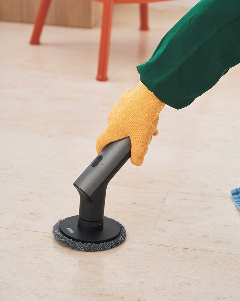 年末の大掃除や日々のお手入れに革命を起こす、〈ホト〉の電動スクラバー。6種類のブラシと伸縮ロッドを付け替え、キッチンや風呂場の頑固な汚れをスクラブ洗浄。¥14,300(MoMAデザインストア 表参道☎03·5468·5801)