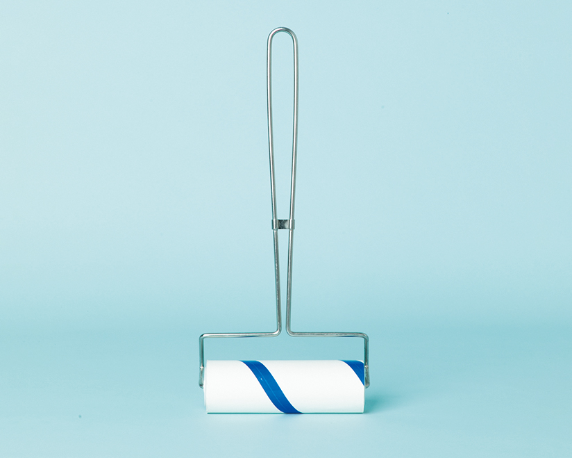 食品加工現場で衣類の埃や髪を取り除くために作られた粘着ローラーは、業務用ならではのデザインがクール。長めのハンドルが特徴で届きにいく背中にも難なくリーチ。¥1,650(シンクオブシングス info@think-of-things.com)