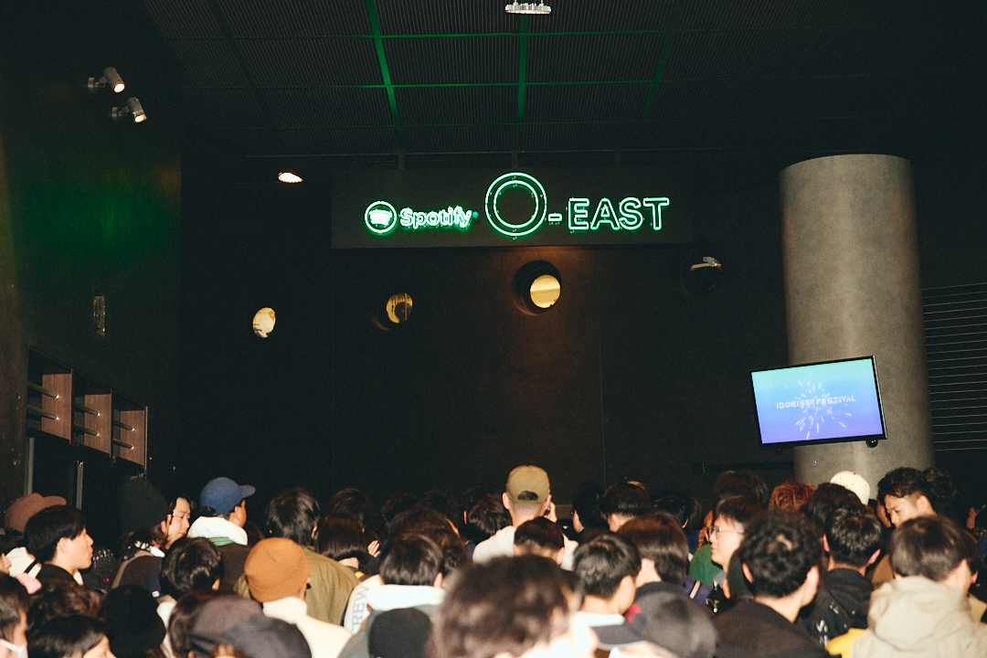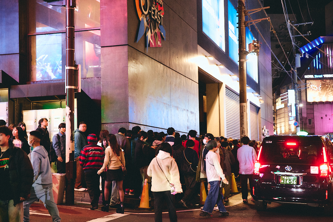 Spotify O-EAST前は入場列でごった返していた。オリジナルグッズを取り揃えた物販も大人気。