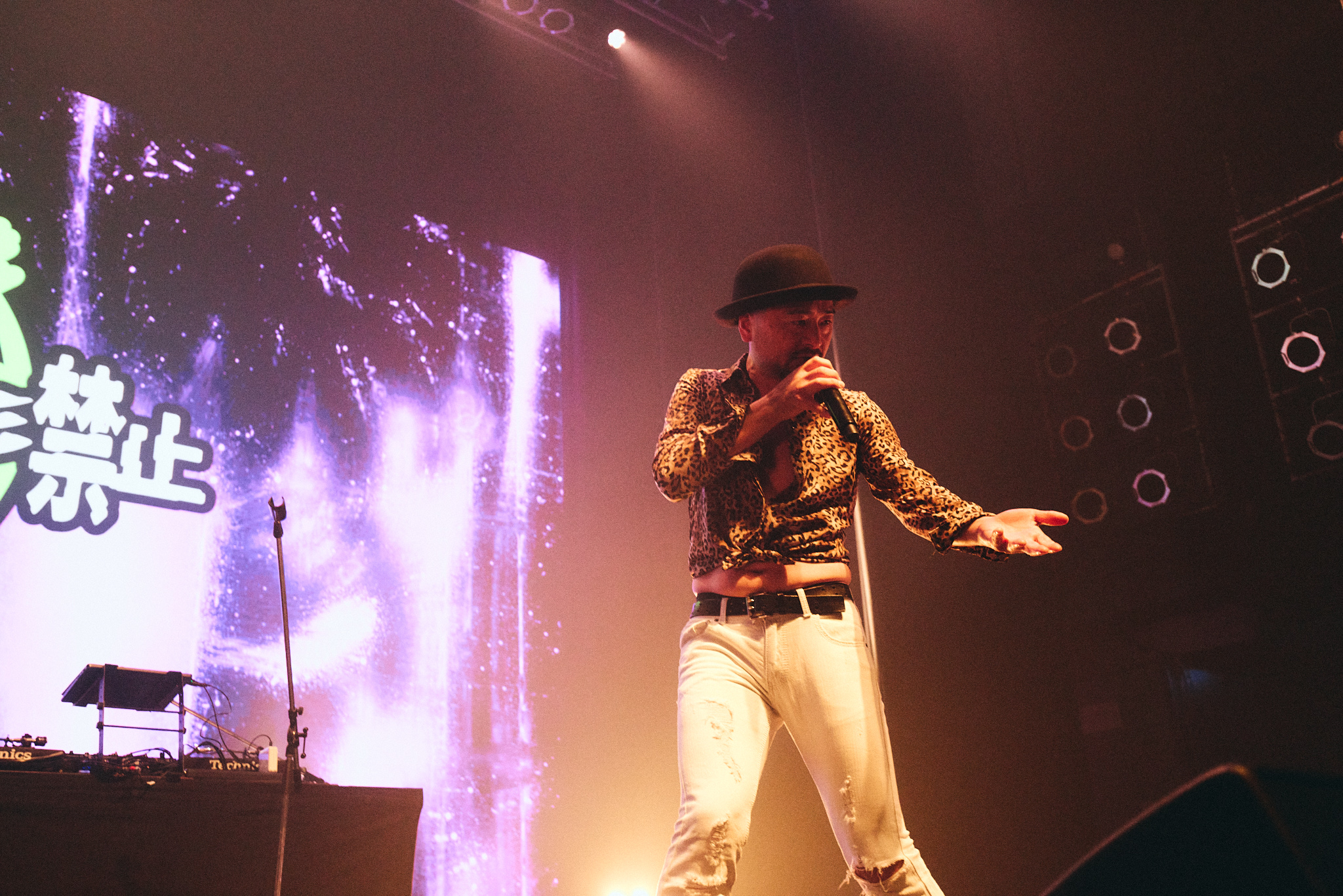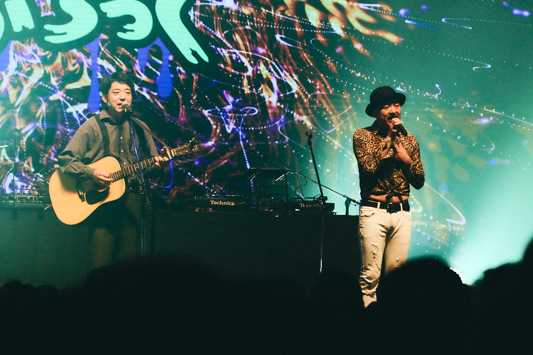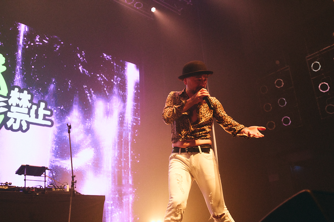 「未確認飛行物体接近中」のイントロが流れるとともに、「飛行物体」(未確認!)「もう来ているぞ」(近くに!)「日出づる処」(島国!)の掛け合いでフロアが揺れたキングギドラ。「UNSTOPPABLE」「平成維新」などの名曲を貫禄たっぷりに披露した。