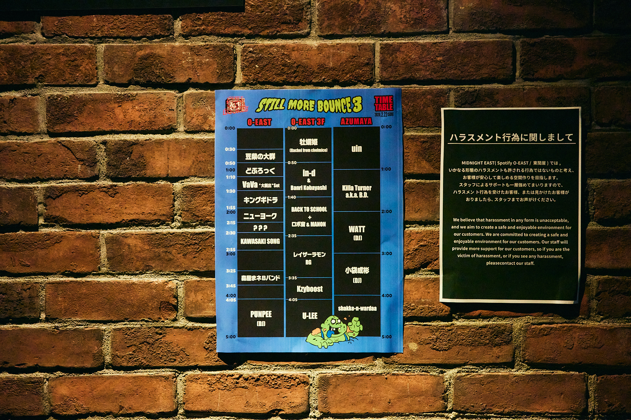 TVディレクターの藤井健太郎さんが主催する音楽イベント「STILL MORE BOUNCE 3」が、2026年2月22日にMIDNIGHT EAST(Spotify O-EAST & AZUMAYA)で開催された。初回は2019年にUNIT/SALOON/UNICEで行われ、第2回の2024年にはSpotify O-EASTに会場を移した。ヒップホップアーティストとお笑い芸人がひっきりなしに出演するオールナイトイベントだ。