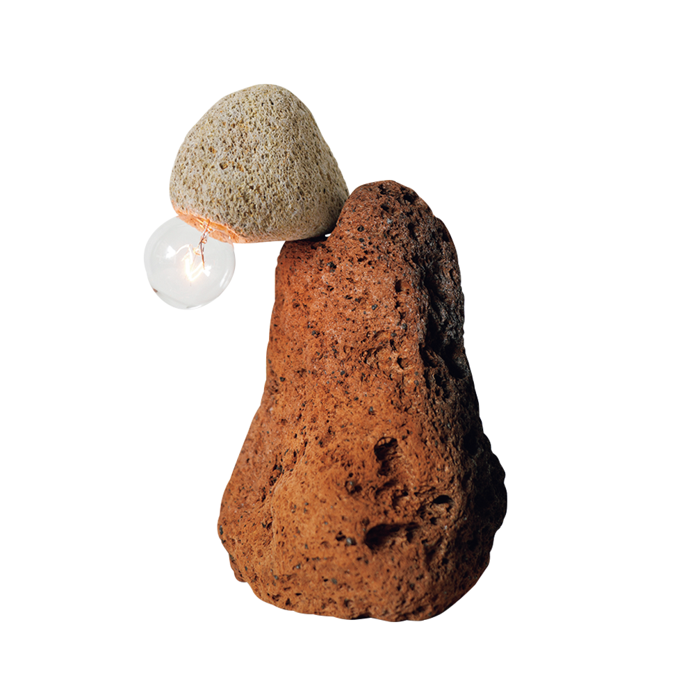 ざらついた溶岩とまん丸い電球のコンビネーションによって生み出された比類なきビジュアルが美しいスタンドライト。¥21,000〜38,500(LIGHT YEARS)