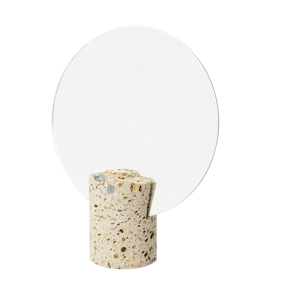 宮城県で採掘される秋保石を台座に使った卓上鏡。顔を見るのも忘れ、石の珍しい模様に魅入られそうだ。¥20,900(Atelier matic ateliermatic.katalok.ooo/ja)