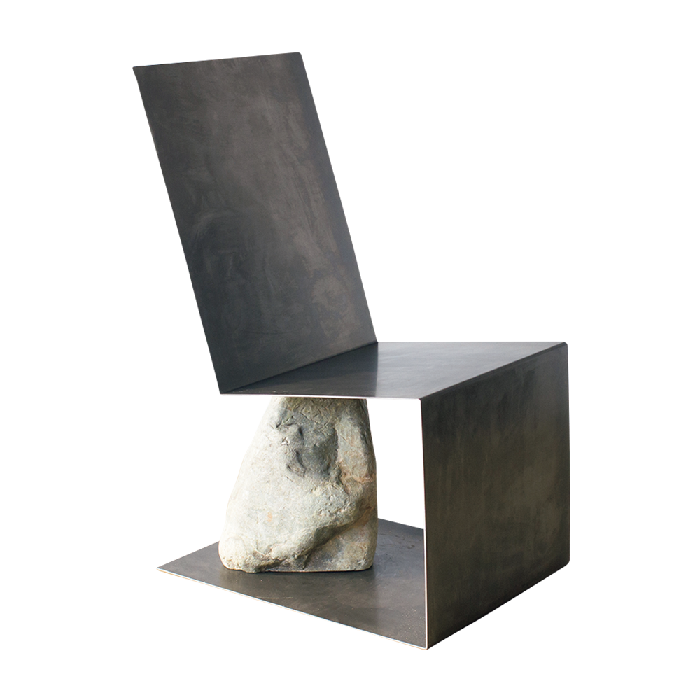 クリエイティブデュオBatten and Kampの椅子は、モダニズムと古代がタイムリープして融合したかのよう。$4,800(SOMEWHERE TOKYO☎03·6452·2224)
